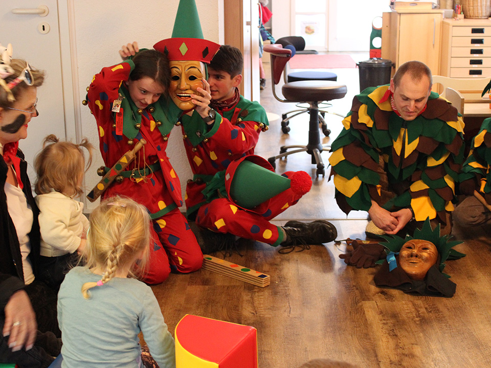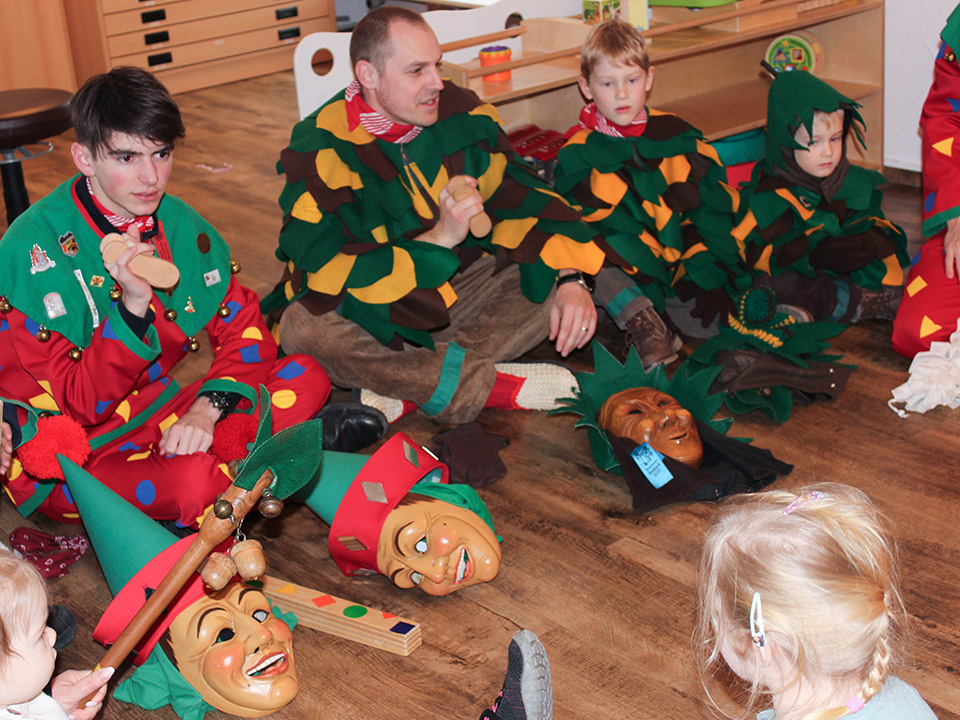 Auch dieses Jahr ging es bei uns wieder närrisch zu. Begonnen haben wir am Mittwoch mit einer Häsvorstellung vom „Lurewiebli“ (Schuttertal). Die Kinder hatten die Möglichkeit, das Kostüm sowie die Maske anzufassen und wer sich traute auch aufzusetzen. Am Schmutzigen Donnerstag hatten wir traditionell in Haslach der „Hemdglunker“. Fasnetfreitag waren bei uns alle „Bunten Narros“ herzlich Willkommen und wir hatten Besuch von der Narrenzunft Haslach, die uns wieder ihre Narros vorgestellt haben (Haselnarro, Schellenhansele und Narrenpolizei). Am Rosenmontag durften alle in ihrer Lieblingsfarbe sich verkleiden und es wurde die ganzen Tage getanzt, gesungen und viel gelacht.