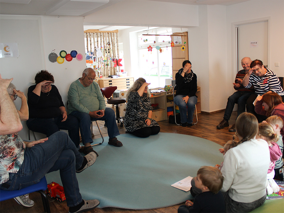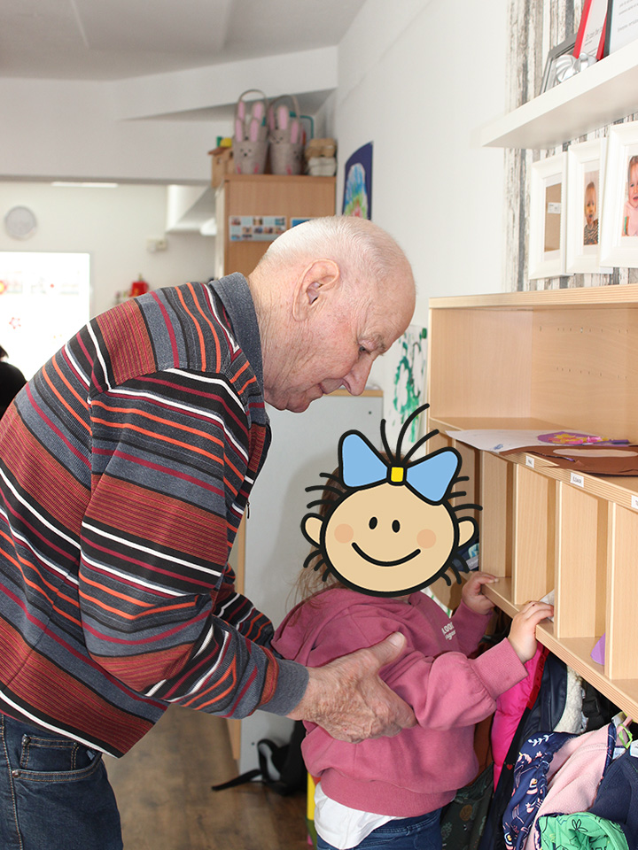 Bei uns wurde ein fröhlicher Oma-Opa-Nachmittag gefeiert. Gemeinsam haben wir gesungen und getanzt. Die Großeltern hatten zudem die Möglichkeit, mit ihren Enkelkindern die Kinderkrippe zu entdecken, zusammen zu spielen und kreativ zu basteln. Auch für das leibliche Wohl war bestens gesorgt, denn die Großeltern haben mit viel Liebe für uns gebacken. Ein herzliches Dankeschön dafür!