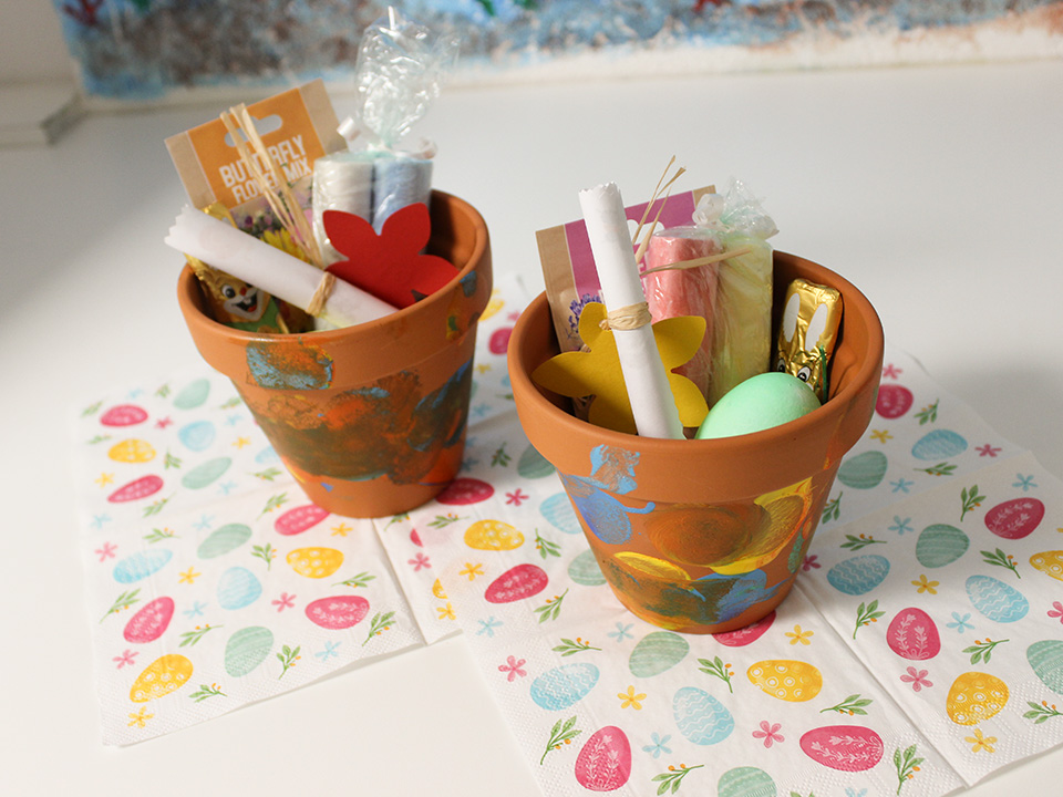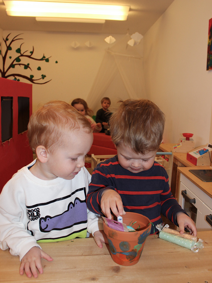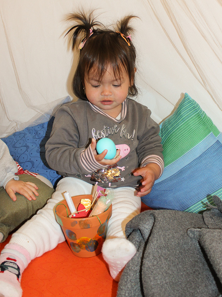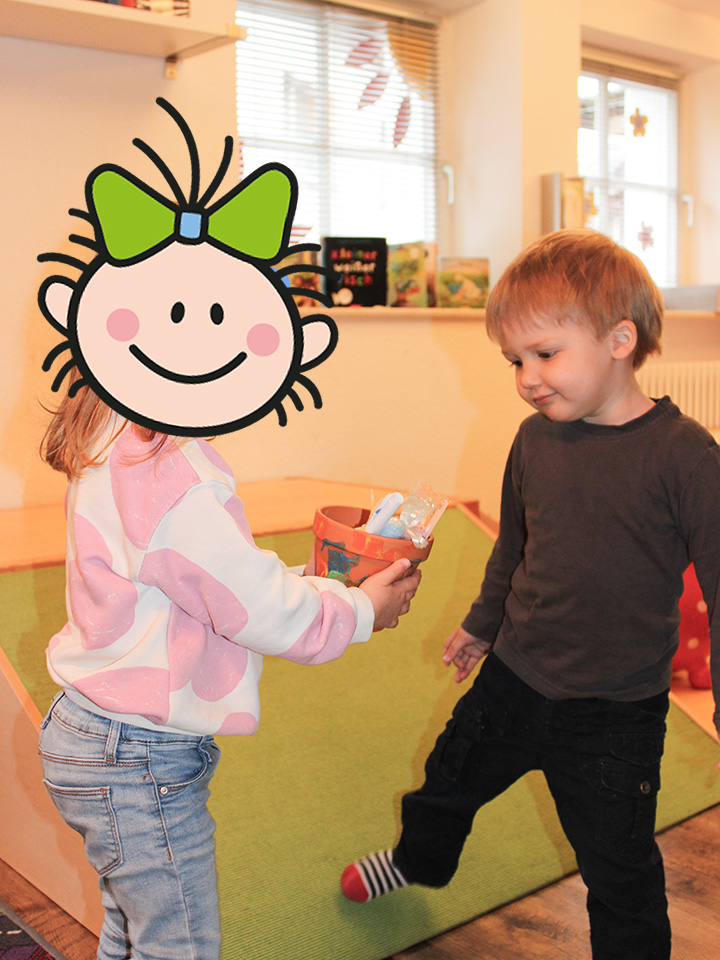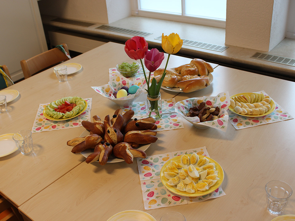 Bei unserer heutigen Osterfeier haben wir zuerst mit einem reichhaltigen Frühstück gestartet. Danach hatten wir genug Power, um auf die Suche zu gehen und tatsächlich hat der Osterhase unsere selbst bemalten Ostertöpfchen bei uns in der Kinderkrippe versteckt.