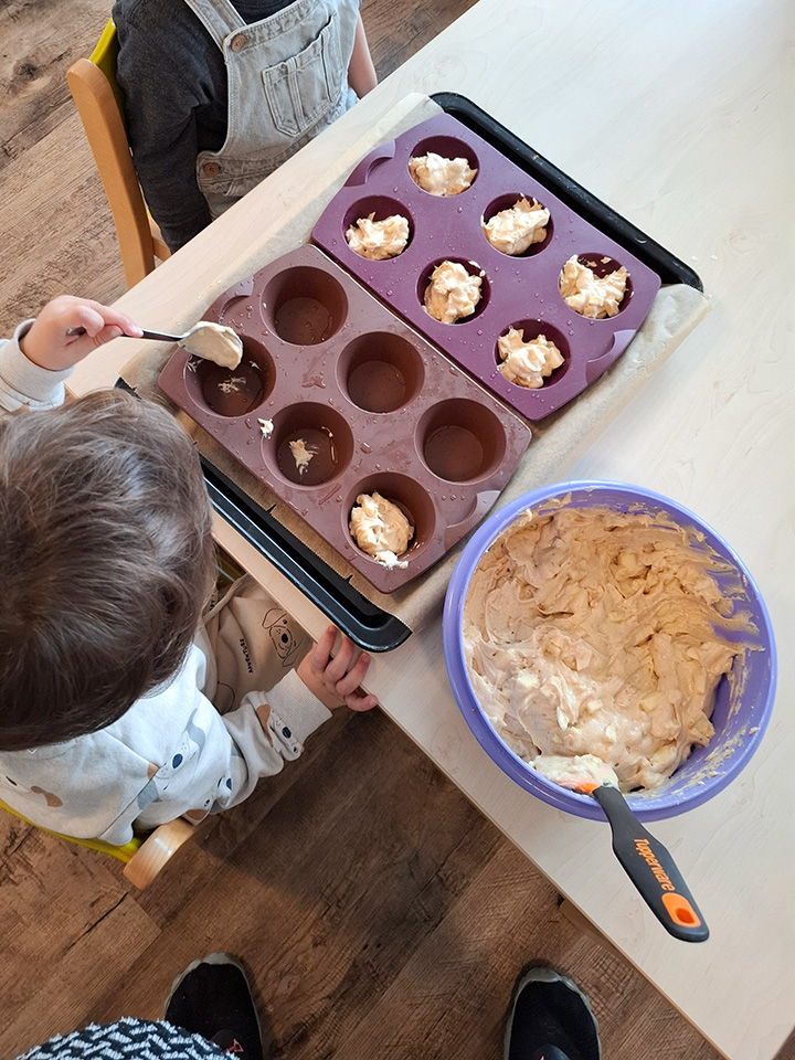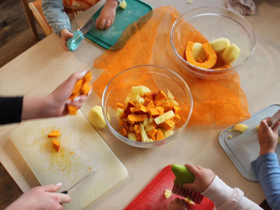Unsere Kinder lieben es zu kochen und zu backen. Deshalb waren wieder alle fleißig und haben passend zur Herbstzeit und zu Erntedank eine leckere Kürbissuppe gekocht sowie duftende Apfelmuffins gebacken.