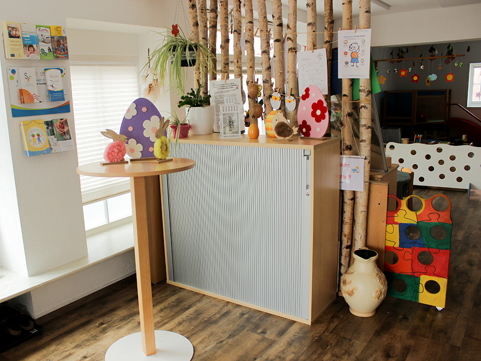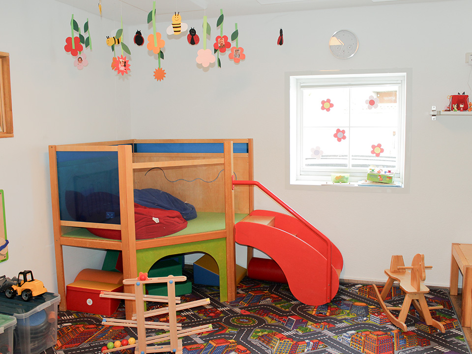 Im Eingangsbereich ist die Garderobe, die an den Essbereich mit Koch- und Ausgabeküchenzeile und den Spielbereich angrenzt. Der Gruppenraum ist hell und großzügig gestaltet. Das angrenzende Büro, welches auch als Personalraum bzw. Besprechungsraum genutzt wird, verfügt über einen separaten Eingang, der auch außerhalb der Betreuungszeiten zugänglich ist. Wir haben einen Schlafraum, Wasch- und Wickelbereich. Es gibt 2 Eingänge und somit ausreichend Fluchtwege. Damit sich jedes Kind in seinen Fähigkeiten entwickeln kann, geben wir Freiräume, Impulse und Anregungen. Rituale, Regeln und Grenzen bieten dem Kind einen sicheren Rahmen und Orientierung. Wir als Erwachsene sind immer Vorbild in unserem Tun oder auch Unterlassen und somit stets Orientierung für das Kind.