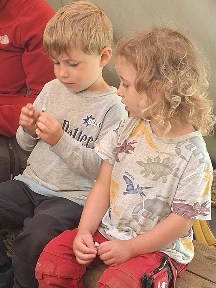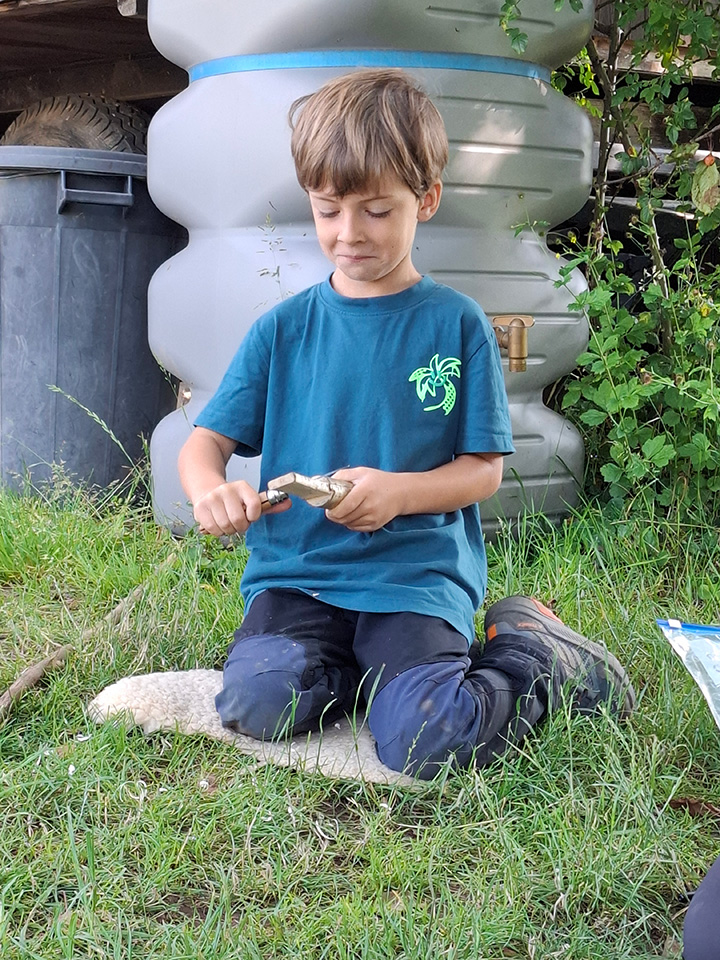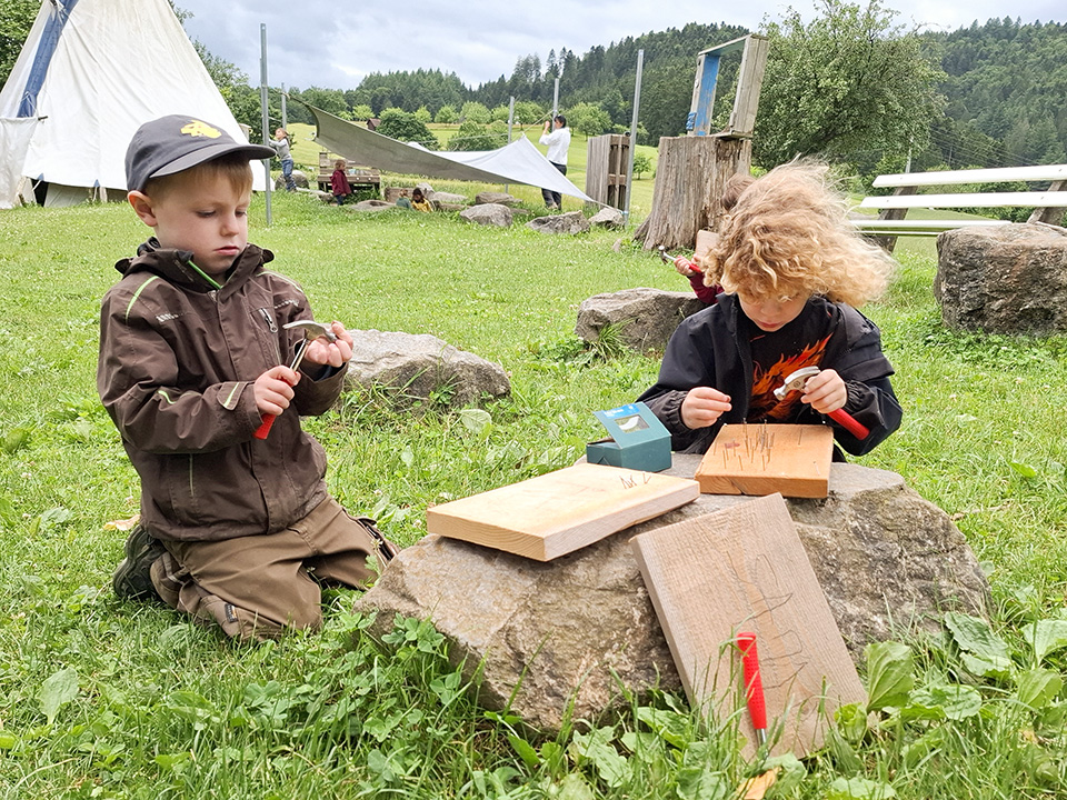 Wir genießen den Juni beim Werkeln und Naturmandala legen. Über das Gänseblümchen und den Holunder haben wir viel Spannendes erfahren sowie leckere Kirschmuffins aus Kirschen vom eigenen Baum gebacken. Die Schulanfänger beschäftigen sich im Großen-Treffen intensiv mit dem Schnitzen. Als Prüfungsarbeit schnitzt sich jeder ein eigenes Buttermesser. Nach bestandenem Schneidetest an Bananen und Gurken werden alle Schulanfänger ihren Schnitzführerschein überreicht bekommen. Nun kennen sie alle wichtigen Schnitzregeln und können mit ihrem Schnitzmesser sicher umgehen. Herzlichen Glückwunsch 😊!