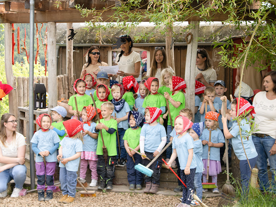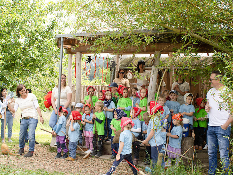 Bei bestem Wetter und in ausgelassener Stimmung feierte das Team des Waldkindergartens Haslach gemeinsam mit den Familien, dem Träger, den Kooperationspartnern Gassenhüpfer und Sandhaasen sowie zahlreichen Besucherinnen und Besuchern das 25-jährige Bestehen des Kindergartens.