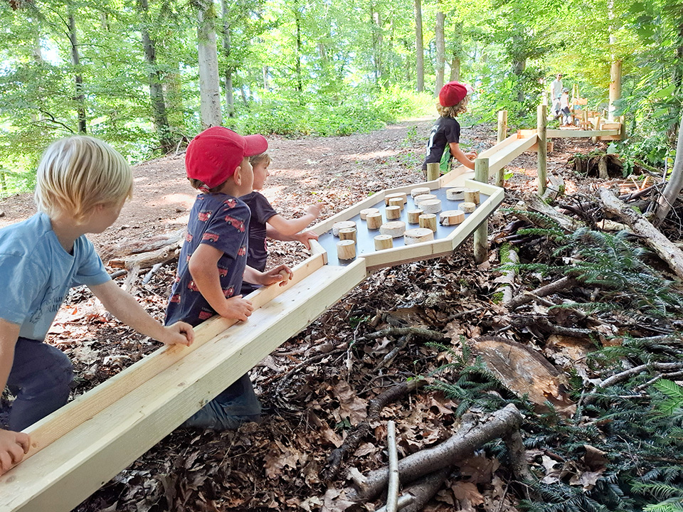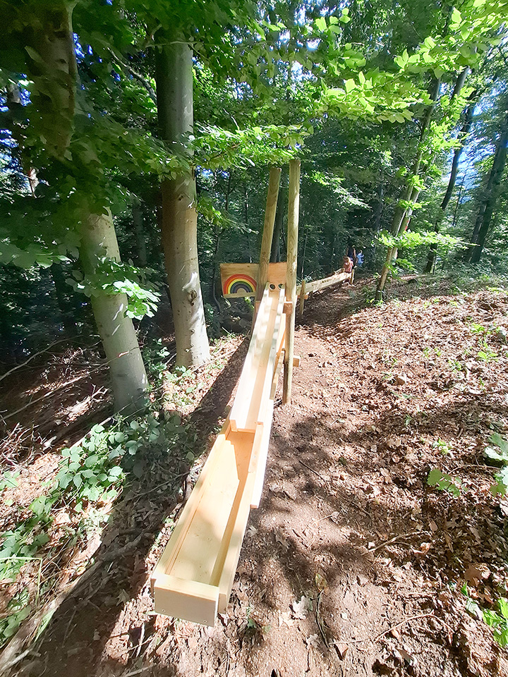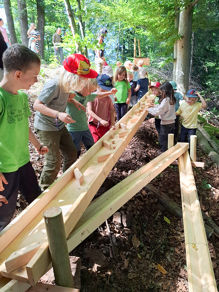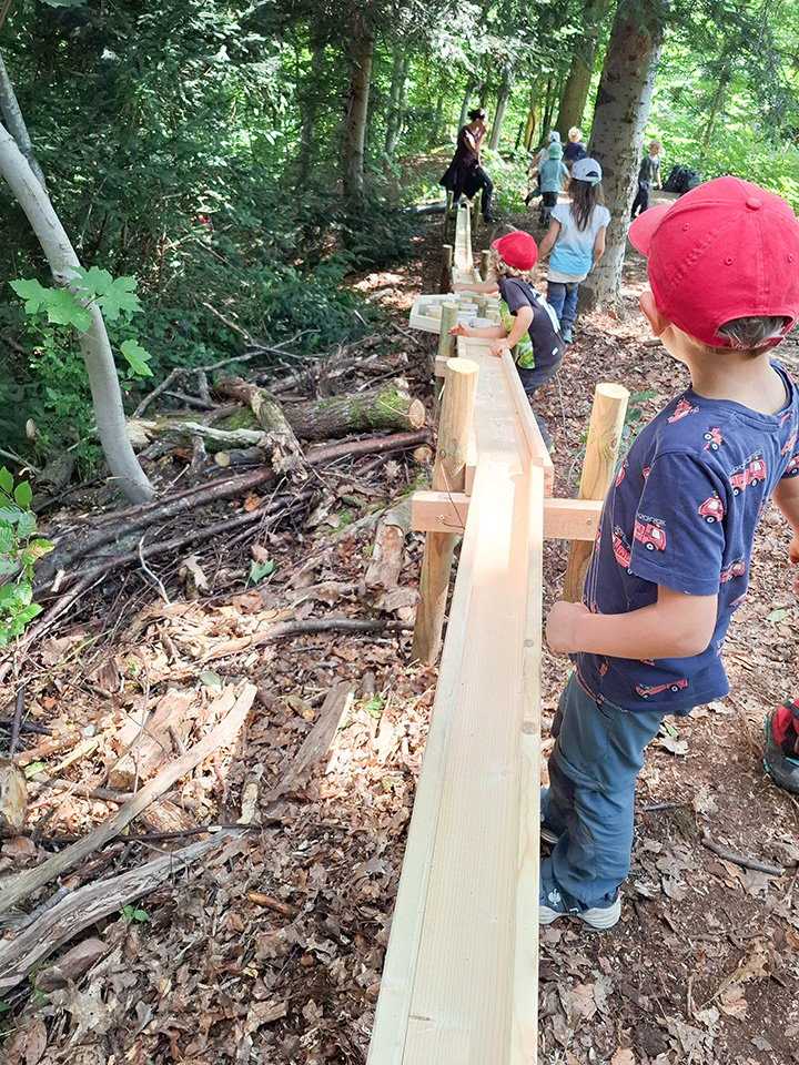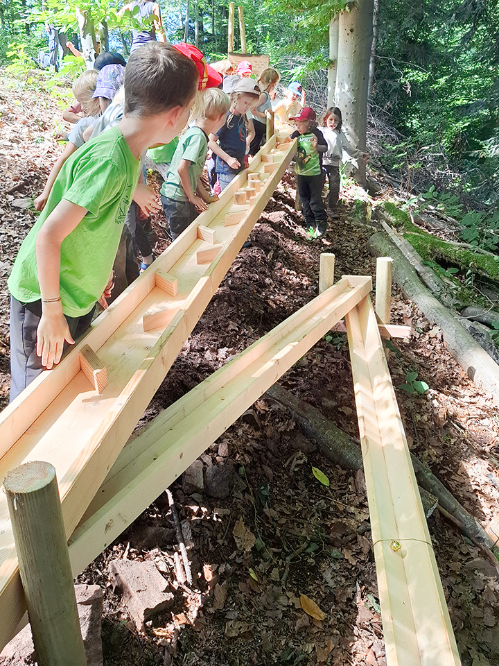 Künftig können alle Waldkinder damit spielen und den langen, abwechslungsreichen Weg der Murmeln den Hang hinunter verfolgen – ein echtes Highlight im Waldalltag.