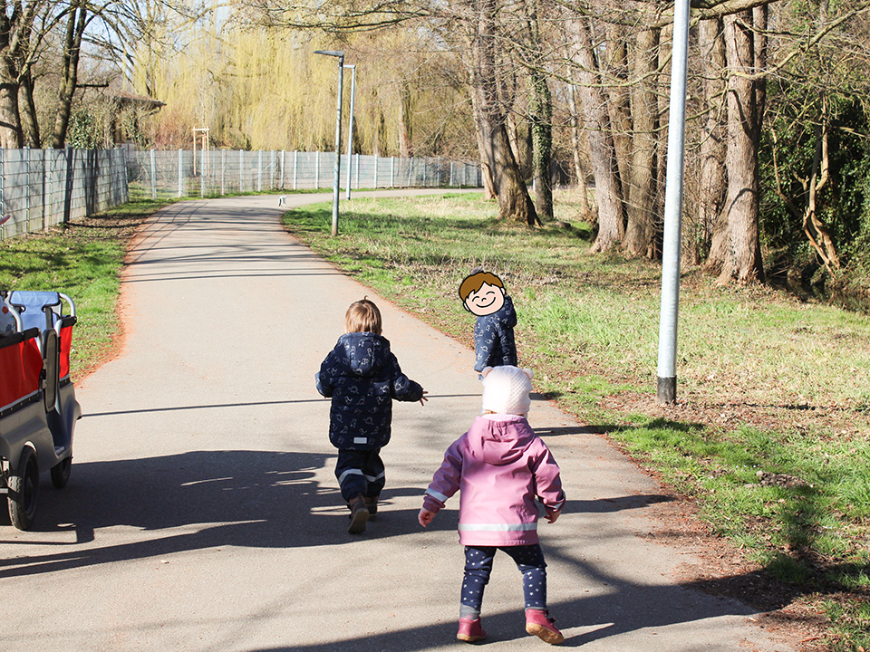 Beim Spaziergang achten wir auf die kleinen und großen Wunder um uns herum – sei es ein interessanter Baum, ein Insekt oder besondere Geräusche aus der Natur. Die Kinder werden angeregt, aufmerksam zu sein und ihre Sinne zu schärfen, während sie die Welt um sich herum beobachten.