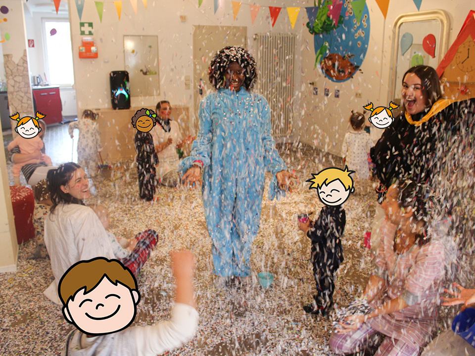 Wir schmeißen Konfetti, tanzen und singen ausgelassen um die Wette, während die Musik die Stimmung anheizt. Dazu backen wir gemeinsam leckere Amerikaner und genießen die Zeit in vollen Zügen. Das Angebot fördert nicht nur die Kreativität und Bewegungsfreude der Kinder, sondern auch das Gemeinschaftsgefühl und den Spaß an gemeinsamen Aktivitäten. Ein buntes und fröhliches Erlebnis für alle!