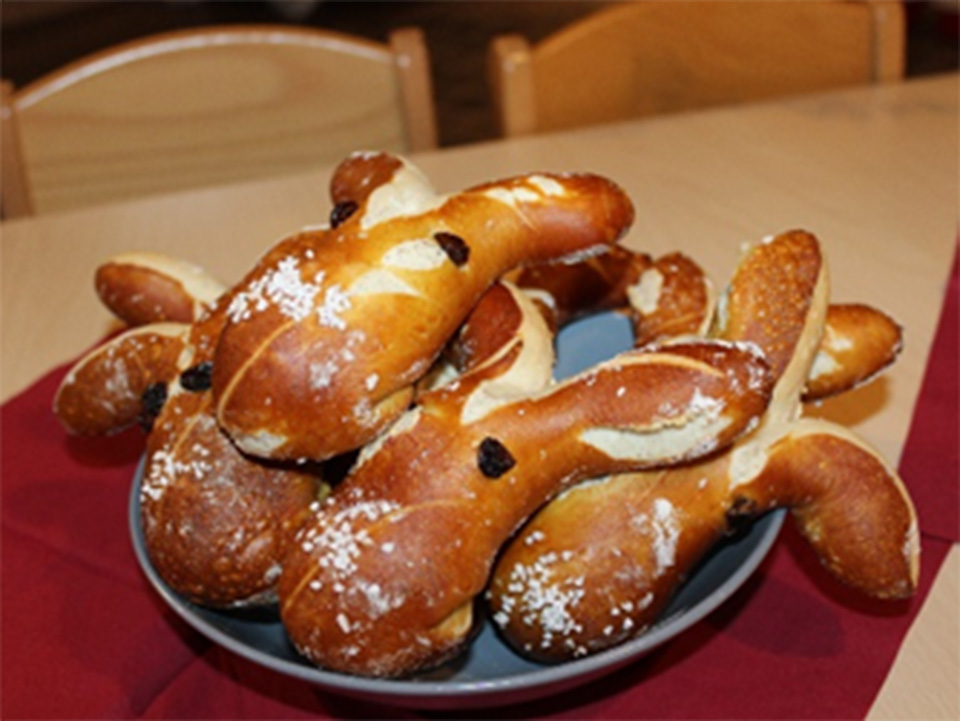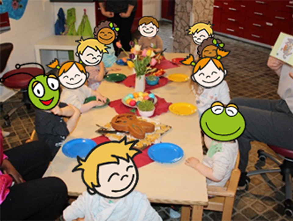 Alle Kinder warten gespannt auf den Osterhasen, der aufgrund des schlechten Wetters zu uns in die Kita kommt. Die Kinder treffen gemeinsam Ostervorbereitungen: Es werden fleißig Eier bunt gefärbt, leckere Osterkekse, ein Hasenkuchen und Laugenhäschen gebacken und die Ostertüten werden gebastelt. Nach einem leckeren Osterfrühstück kann die Ostereiersuche losgehen!