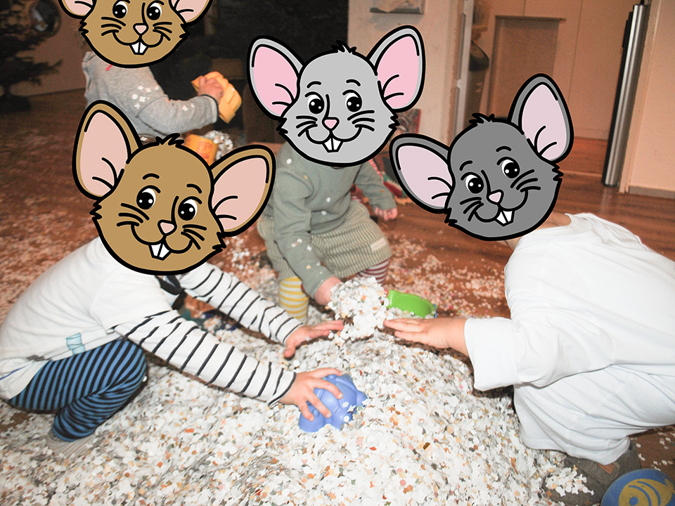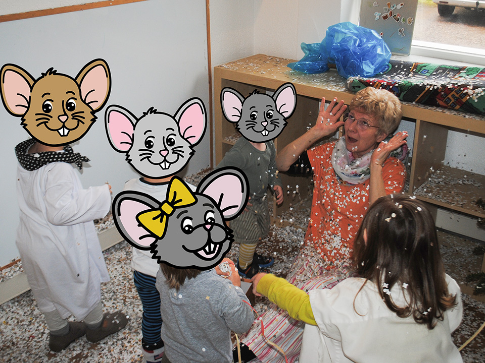 Am Schmutzigen Donnerstag feierten wir unsere fröhliche Konfetti-Party. Es liefen tolle Fasnachtslieder, zu denen die Kinder begeistert tanzten. Besonders viel Spaß machte das Werfen und Entdecken des bunten Konfettis.