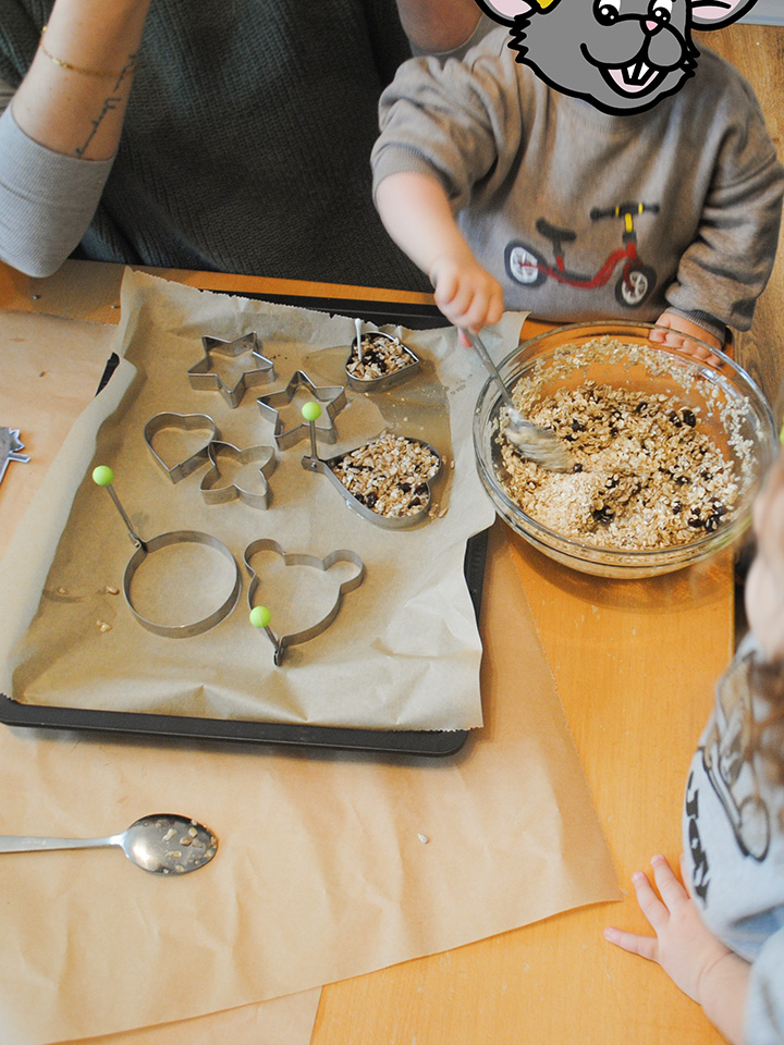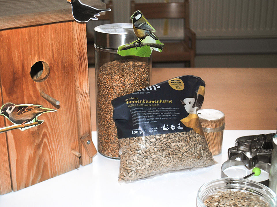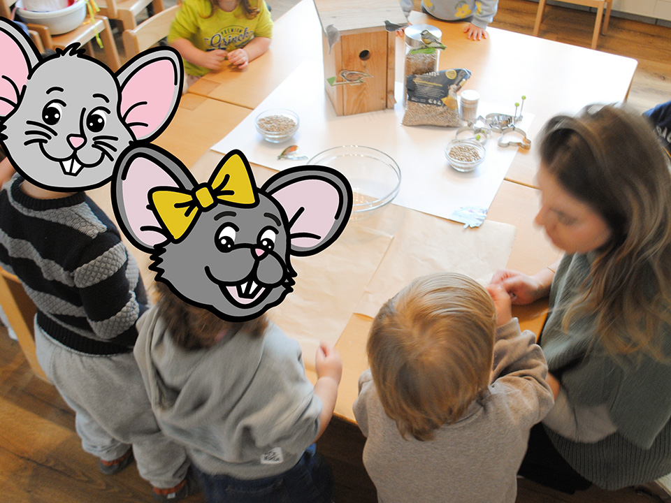 Damit unsere heimischen Vögel auch in der kalten Jahreszeit genug zu fressen finden, stellten wir gemeinsam Vogelfutter her. Die Kinder mischten Kokosfett mit verschiedenen Samen und füllten die Masse in unterschiedliche Förmchen. Anschließend richteten wir gemeinsam eine Futterstelle ein.