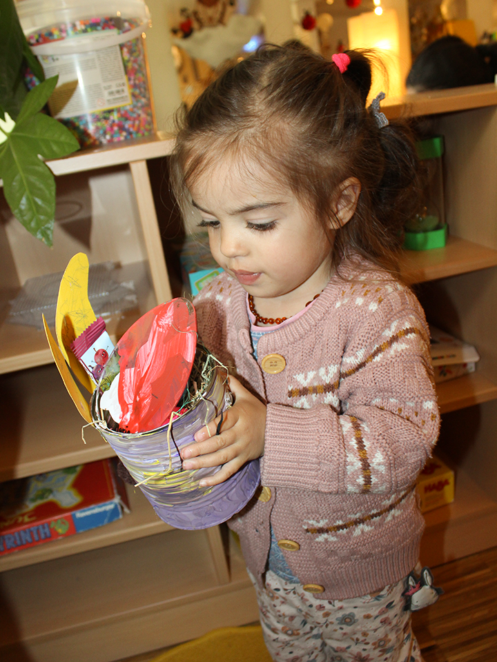 In den Krippengruppen stand der Frühling ganz im Mittelpunkt. Die Kinder entdeckten die neue Jahreszeit mit allen Sinnen – riechen, schmecken, hören, sehen und fühlen durften nicht fehlen.
