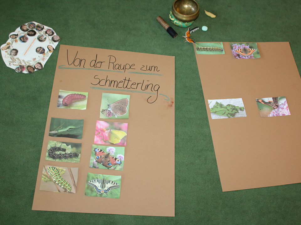 In der altersgemischten Gruppe gingen wir noch einen Schritt weiter: Anhand von Bildern entdeckten die Kinder verschiedene Raupen- und Schmetterlingsarten. Dabei staunten sie, wie unterschiedlich und vielfältig diese Tiere aussehen können – und dass es noch viele spannende Arten jenseits der bekannten Buchfigur gibt.