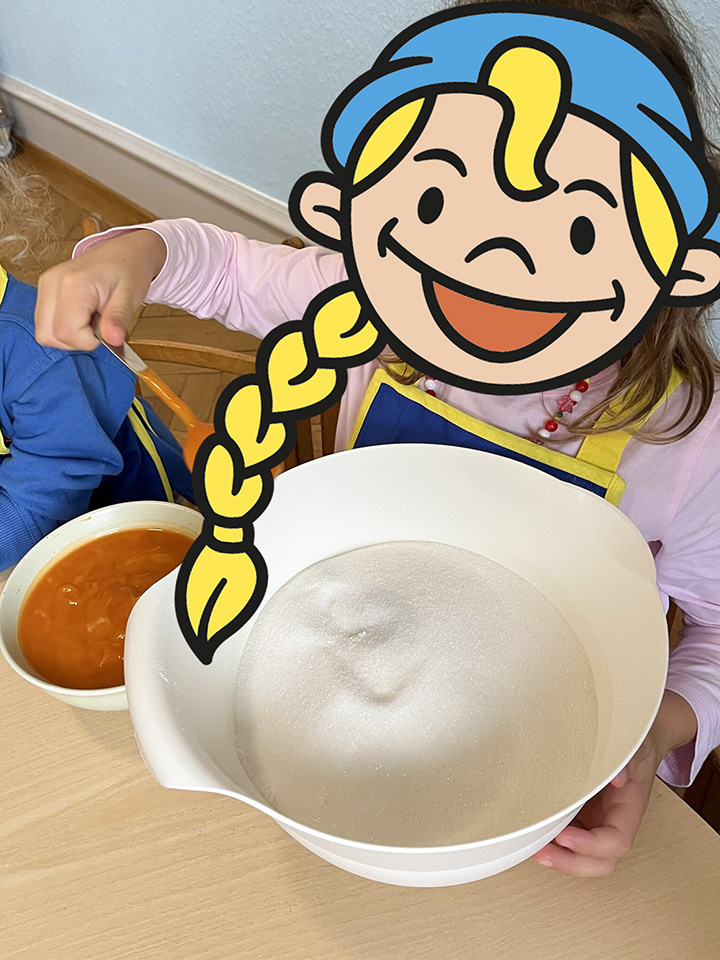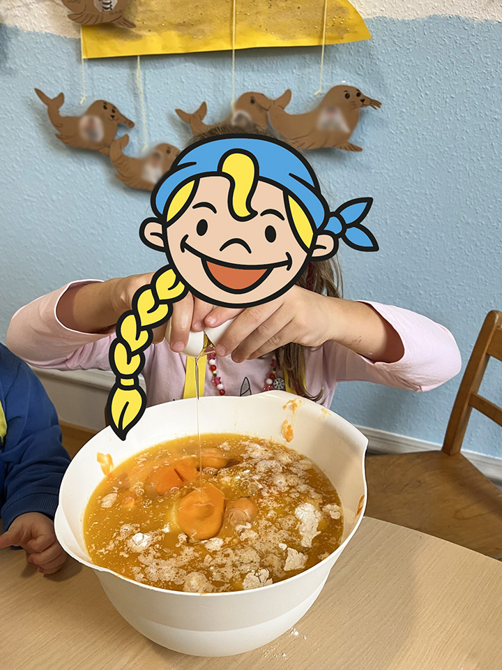 In unserem Backangebot erleben die Kinder den achtsamen und kreativen Umgang mit Lebensmitteln und Küchenutensilien. Gemeinsam bereiten wir einfache Rezepte zu – vom Teig anrühren über Kneten bis hin zum Verzieren. Die Kinder übernehmen altersgerechte Aufgaben, probieren neue Lebensmittel aus und gestalten ihre Backwerke mit großer Begeisterung.