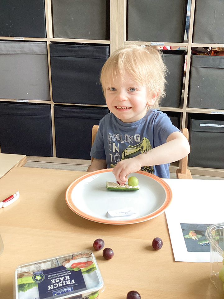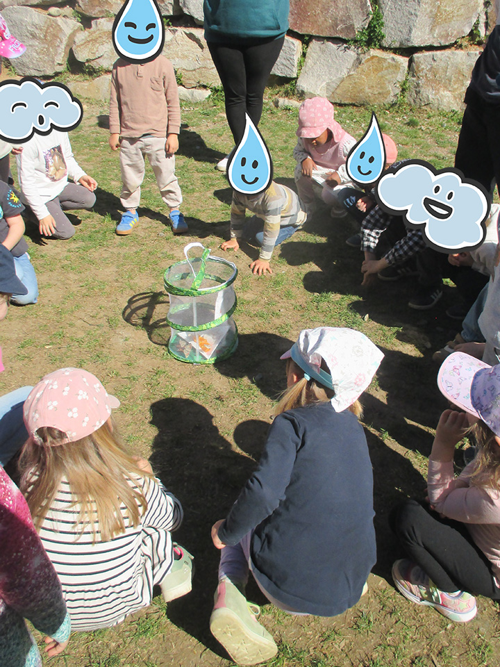 Im Kinderhaus Sonnenschein bekamen wir Besuch von ein paar Raupen, wo die Kinder über mehrende Wochen beobachten konnten wie aus den Raupen Schmetterlinge werden. Ganz gespannt schauten die Kinder sich jeden Tag die Raupen an, um zu sehen, ob sie schon zu Schmetterlingen wurden. Passend zum Thema wurden verschiedenen Angebote gemacht. Die Regentröpfchen-Gruppe haben „Amerikaner“ gebacken und daraus eine Raupe gelegt. Die Wölkchen-Gruppe haben aus Obst und Gemüse lustige Raupen gemacht. Als die Raupen sich in einen Kokon verpuppten schlüpften sie bald darauf. Gemeinsam ließen sie die Schmetterlinge draußen fliegen. Das war ein besonderer Moment für alle und die Kinder haben sich sehr über die Schmetterlinge gefreut. Sie lernten, wie aus einer Raupe ein Schmetterling wird.