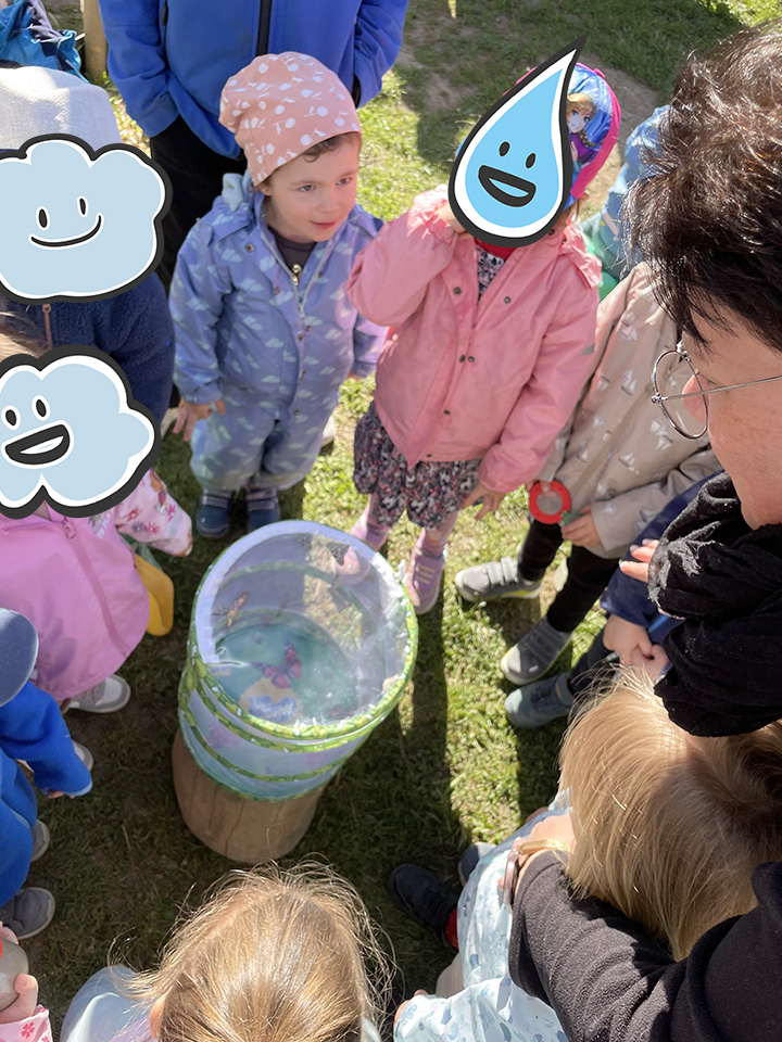 Vom 7. bis 11. Juli 2025 erlebte die Wirbelwindgruppe eine spannende und erlebnisreiche Waldwoche. Jeden Morgen machten sich die Kinder gemeinsam auf den Weg zum Waldrand, wo ein kleines Bächle plätscherte und der Wald zum Entdecken einlud. Dort gab es jeden Tag etwas Neues zu erleben: Es wurde gespielt, geplanscht und fleißig gebaut – unter anderem entstand ein tolles Tipi-Zelt aus gesammelten Stöcken.