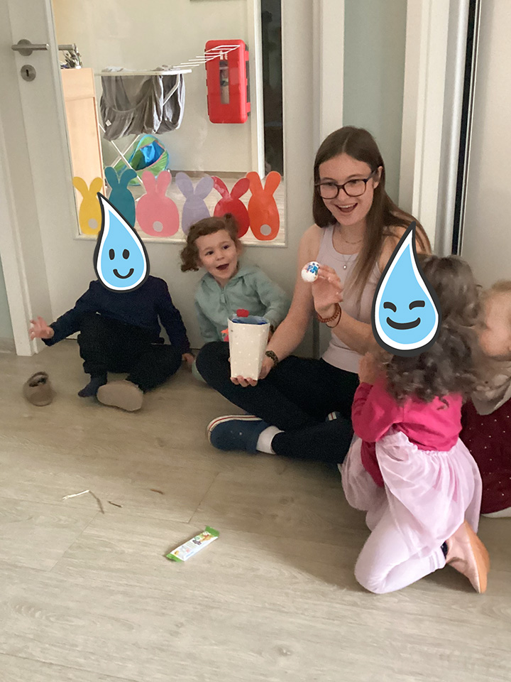 Der Frühling ist da und die freudige Erwartung, dass der Osterhase das Kinderhaus Sonnenschein besuchen wird, stieg immer mehr und mehr. Doch davor war noch viel zu tun. Die Kinder backten, malten und bastelten ganz fleißig für den Osterhasen. Dann war der Tag endlich da und der Osterhase versteckte für die Kinder ihre Osternester. Die Kinder freuten sich riesig über die Leckereien.