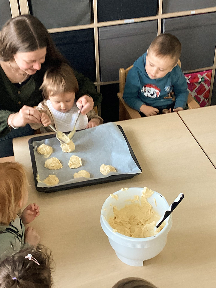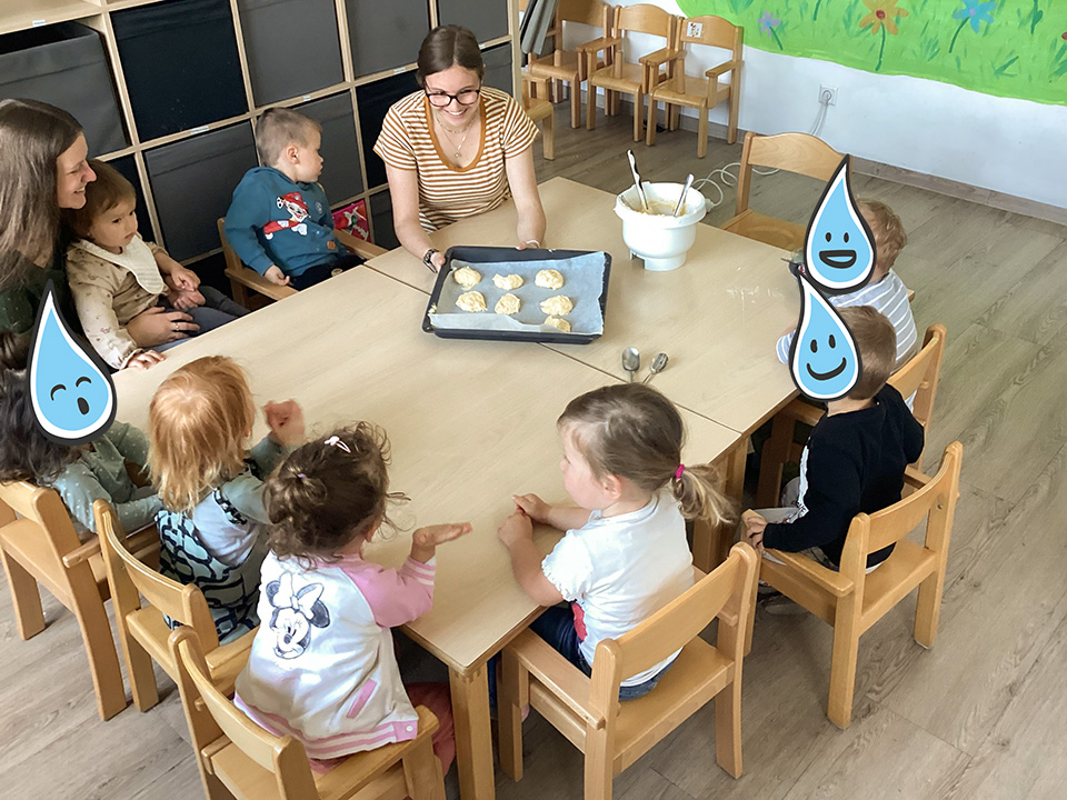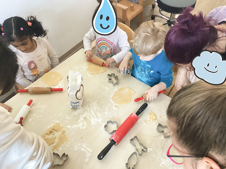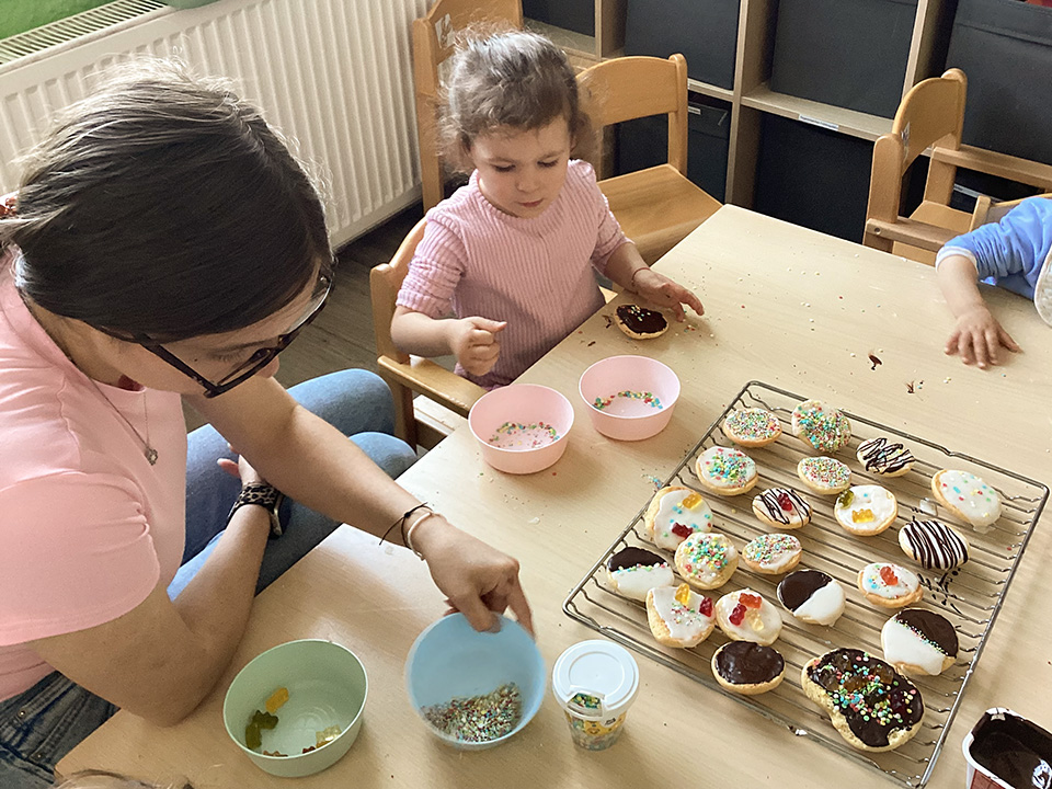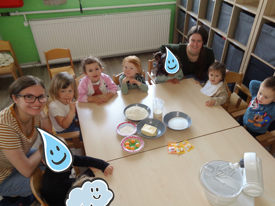Die Regentröpfchen haben zusammen Amerikaner gebacken und dekoriert. Das Backen hat den Kindern sehr viel Spaß gemacht und die Amerikaner haben sehr lecker geschmeckt.