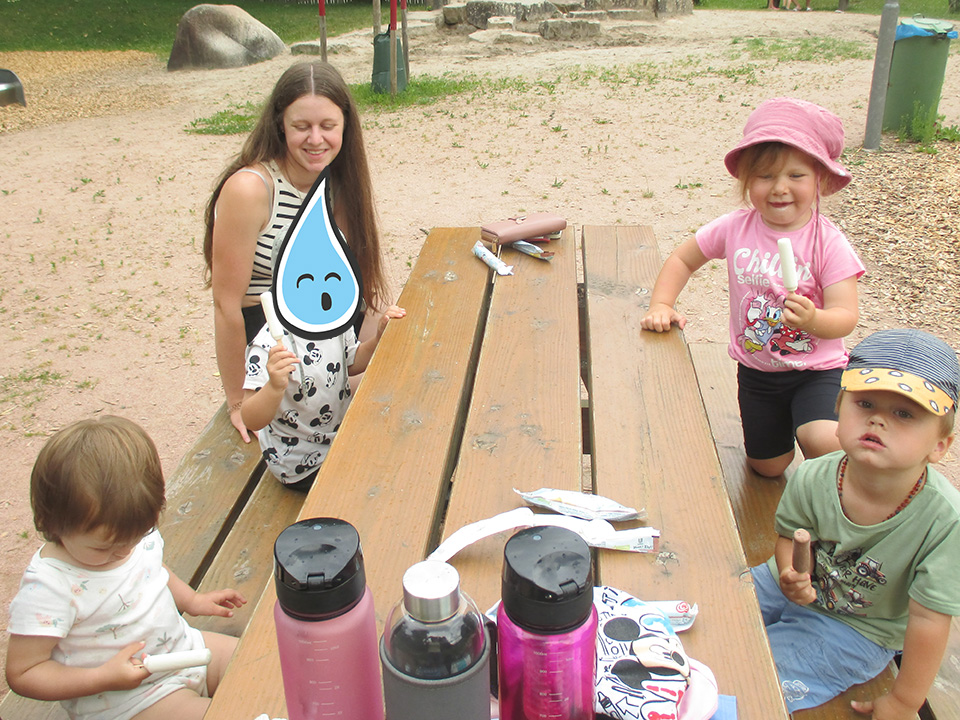 Dann ging es richtig los: Der Spielplatz wurde mit viel Begeisterung erobert! Es wurde geschaukelt, gerutscht und ausgiebig im Sand gespielt – die Kinder konnten sich so richtig austoben. Nach dem ganzen Spielen stärkten wir uns mit einem kleinen Mittagssnack. Als besonderes Highlight gab es zum Abschluss noch ein leckeres Eis.