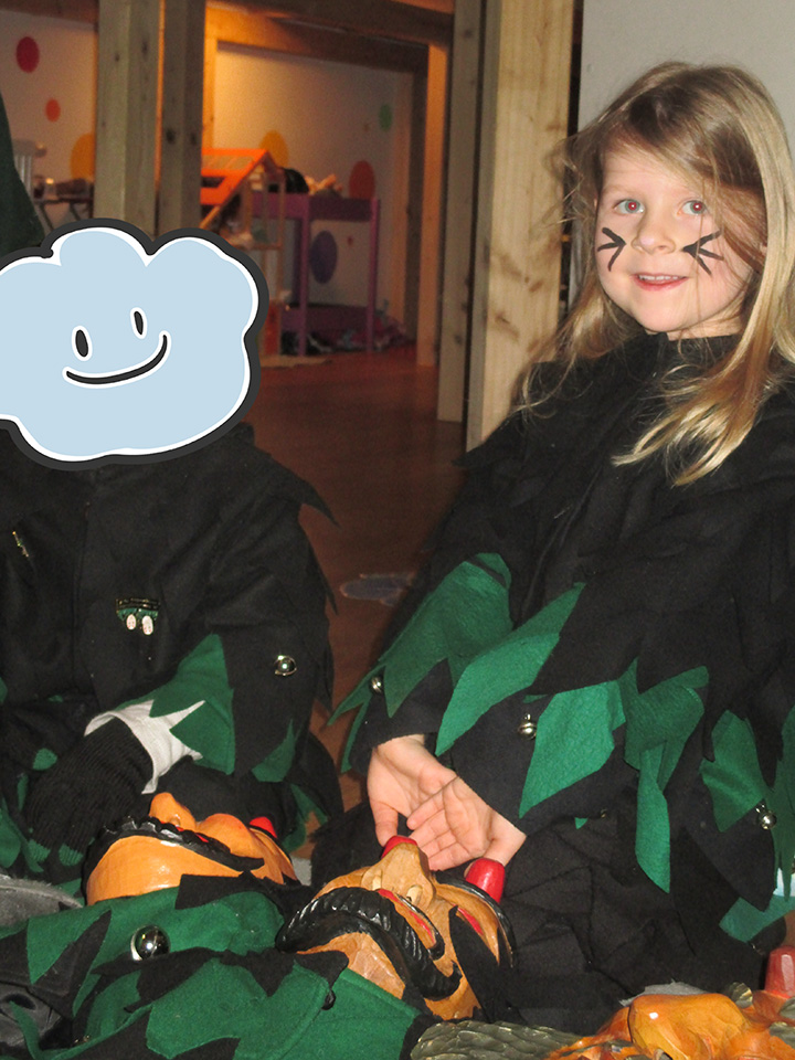 Passend zum Herbst haben alle Gruppen das Kinderhaus liebevoll mit Kastanien und Kürbissen geschmückt. Jede Gruppe gestaltete eigene herbstliche Angebote: Die Wirbelwindgruppe verkleidete sich an Halloween als kleine Gespenster und genoss ein leckeres Halloween-Frühstück. Die Regentröpfchen bastelten aus Salzteig Anhänger. Die Wölkchen stellten selbst Apfelchips her und bastelten viele weitere kreative Herbstideen. Die Kinder haben dabei viel über den Herbst gelernt und hatten bei den verschiedenen Aktivitäten großen Spaß.