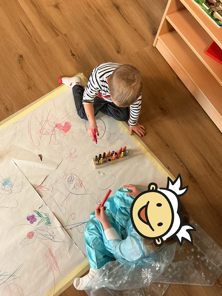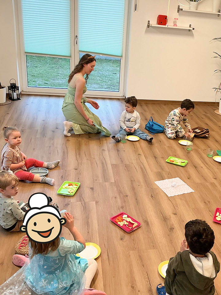 Im Februar feierten wir gemeinsam mit den Kindern Fasnacht und veranstalteten am Fasnachtsfreitag einen ganz besonderen „Verrückten Tag“. An diesem Tag lief alles ein bisschen anders als gewohnt: Der Morgenkreis fand unter dem Narrenbaum statt, und zum Frühstück saßen alle gemütlich auf dem Boden.