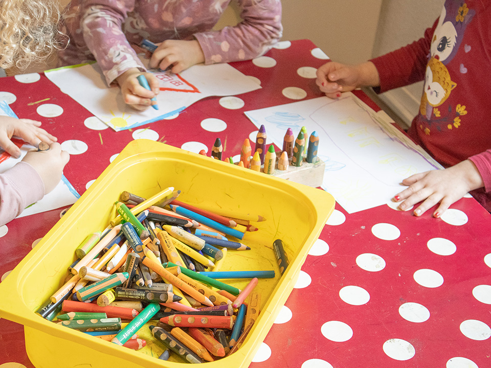 In unserem Kinderhaus werden Kindern verschiedene Spiel-, Lern und Forschermöglichkeiten geboten. Die Bereiche sind nach Alter, Entwicklungsstand und vor allem nach Interessen der Kinder eingerichtet. Krippen und Kindergartenbereiche sind voneinander abgetrennt. Dennoch gibt es viele Berührungspunkte zwischen den Kindern aller Altersstufen durch gruppenübergreifende Angebote. Im Außenbereich befinden sich Sandkästen und Wege, die die Kinder mit kleinen Fahrzeugen befahren können. Die Kindertagesstätte ist barrierefrei und liegt im Erdgeschoss.