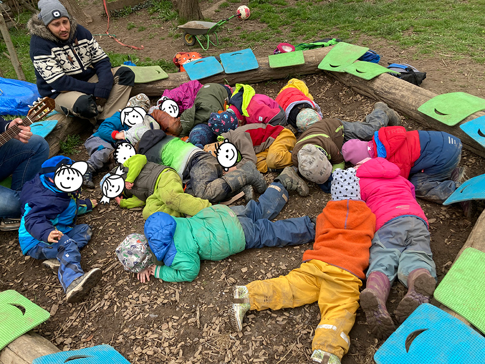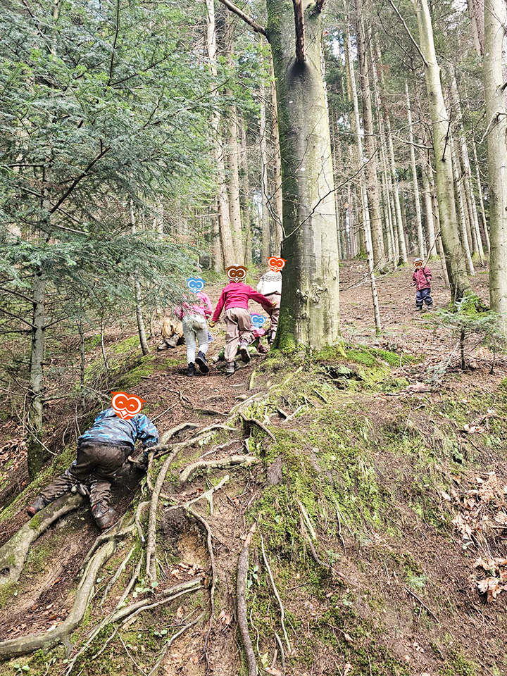 Im Wald werden die Sinne der Kinder geschärft, beispielsweise beim Klettern oder Balancieren über einen Baumstamm, beim Legen von Mandalas, beim Herstellen von Naturfarben oder beim Lauschen der Geräusche im Wald. Durch den täglichen Aufenthalt im Wald erlernen die Kinder Sicherheit für die eigene Körperwahrnehmung und den Gleichgewichtssinn und stärken somit ihr Selbstbewusstsein. Die Kinder entdecken und begreifen ökologische Zusammenhänge und lernen den respektvollen Umgang mit der Natur und untereinander.