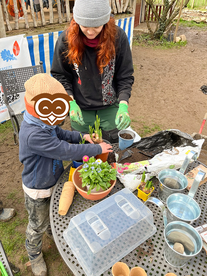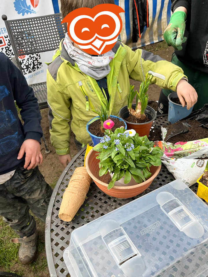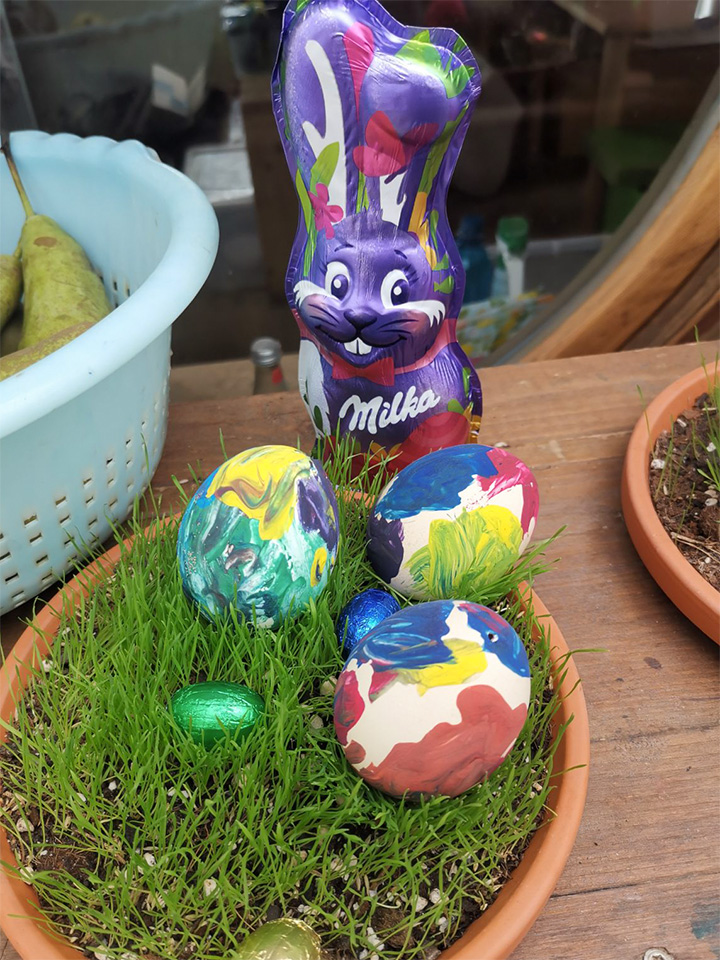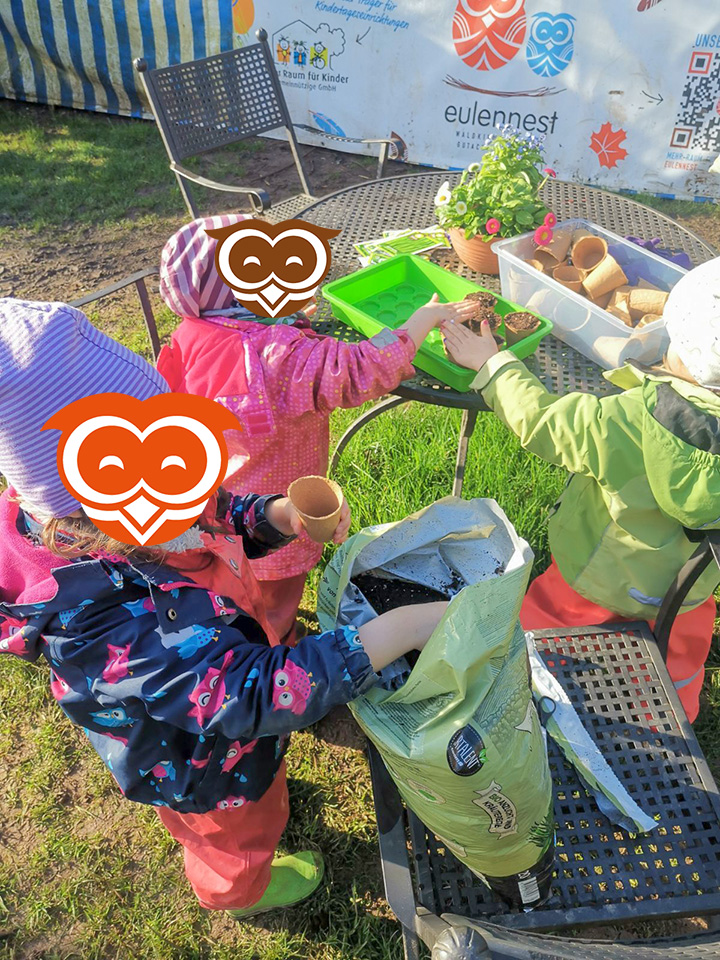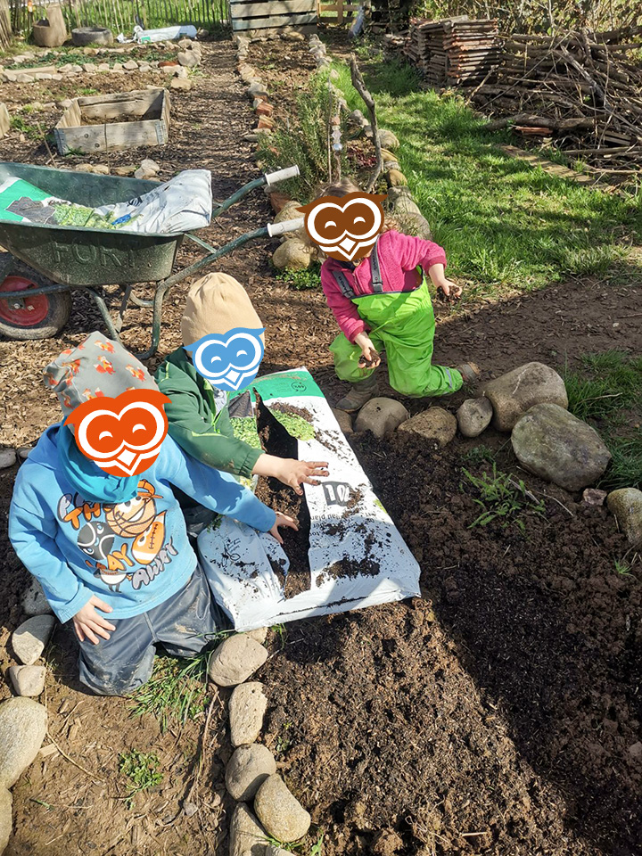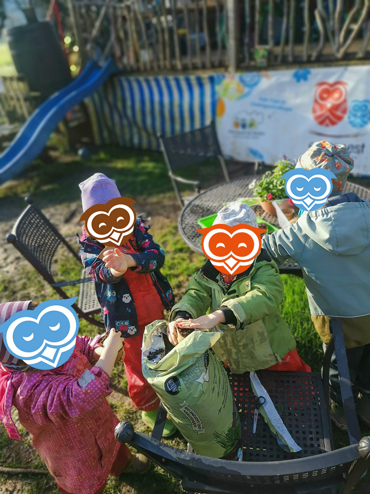 Im März haben wir im Eulennest den Frühling begrüßt und angefangen alles für die kommende Gartensaison vorzubereiten. Dazu haben wir gemeinsam mit den Kindern zunächst verschiedene Blumen zur Dekoration unserer Terrasse eingepflanzt. Zudem haben wir die unterschiedlichsten Kräuter für unser Hochbeet angesät, sowie die verschiedensten Gemüsesorten für unseren Garten ausgewählt. Dann hieß es abwarten, regelmäßig gießen und beobachten, wie alles schön wächst und gedeiht. Ende März hat uns dann sogar noch der Osterhase besucht und uns selbst gefärbte Eier und andere Leckereien in die ebenfalls von den Kindern mit Ostergras bepflanzten Osternester gelegt.