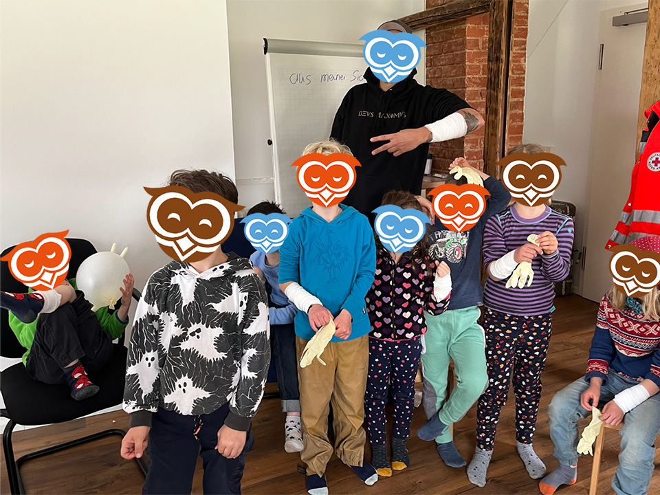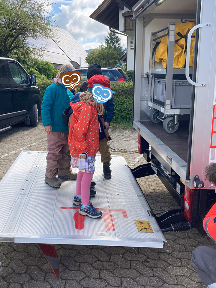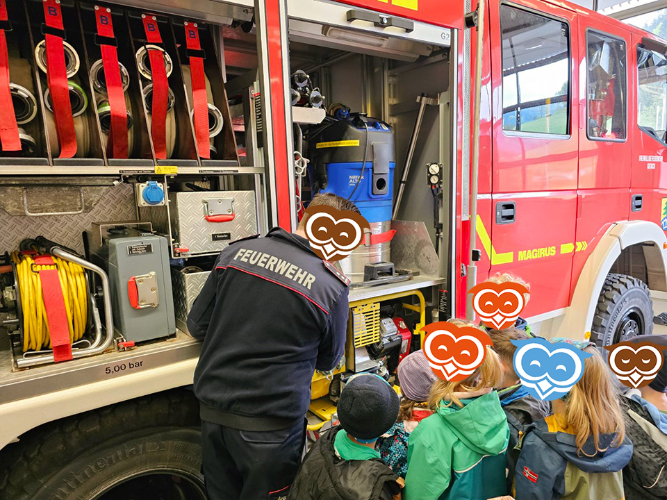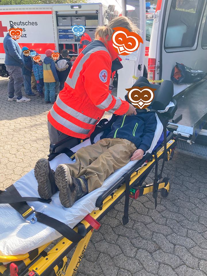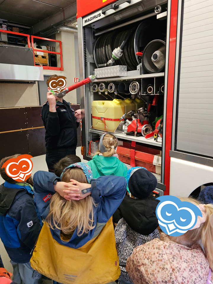Im April haben die Schulanfänger vom Eulennest einige der wichtigsten Berufe in unserer Gesellschaft kennen gelernt. Gemeinsam mit den Schulanfängern des Kinderhaus Bärenzauber haben wir zunächst die örtliche Feuerwehr besuchen dürfen. Der Feuerwehrkommandant hat uns dabei zunächst erklärt, wie Brände entstehen können und was zu tun ist, wenn dieser Ernstfall tatsächlich einmal eintritt. Anschließend haben wir gemeinsam noch die Ausrüstung und Fahrzeuge der Feuerwehr begutachtet und durften zum Abschluss sogar eine kurze Runde in einem Feuerwehrauto mitfahren.