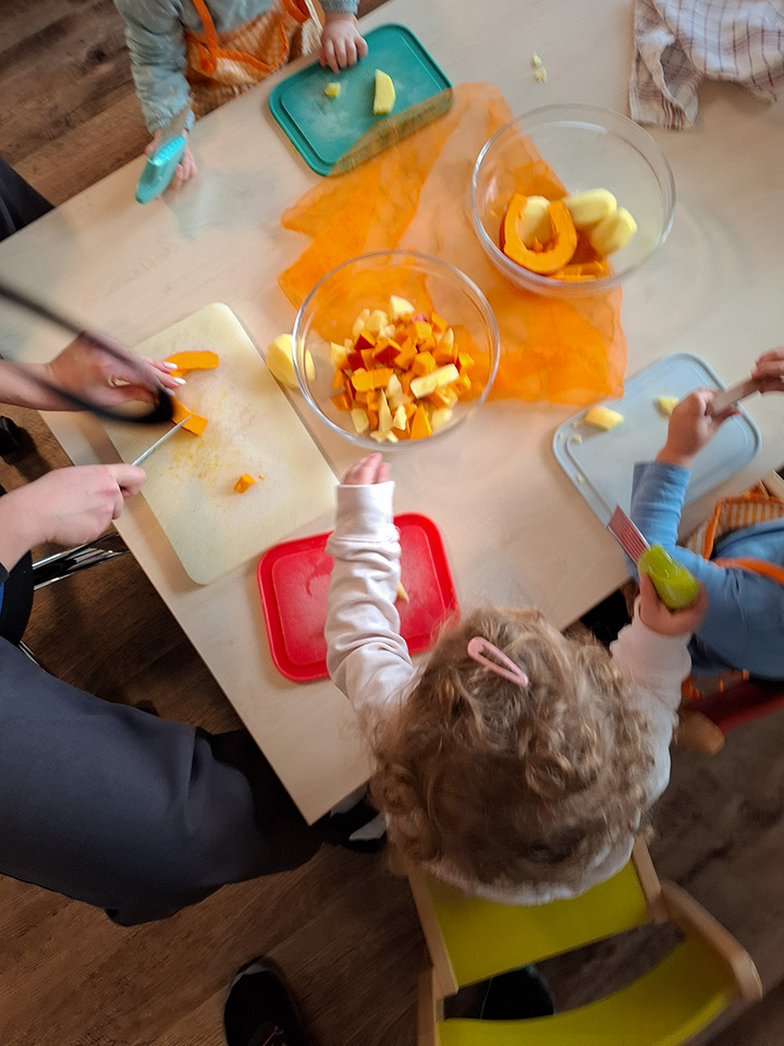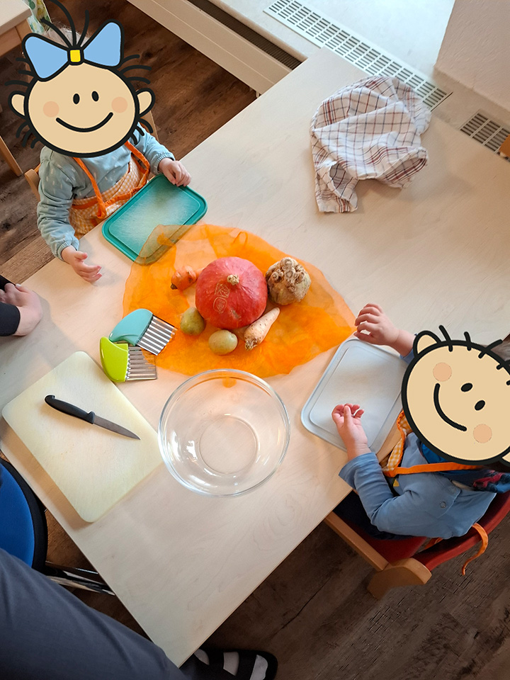 Unsere Kinder lieben es zu kochen und zu backen. Deshalb waren wieder alle fleißig und haben passend zur Herbstzeit und zu Erntedank eine leckere Kürbissuppe gekocht sowie duftende Apfelmuffins gebacken.