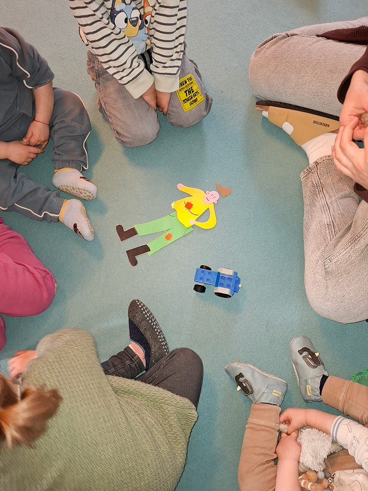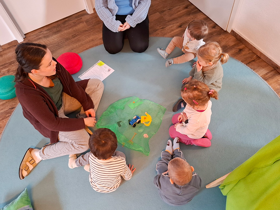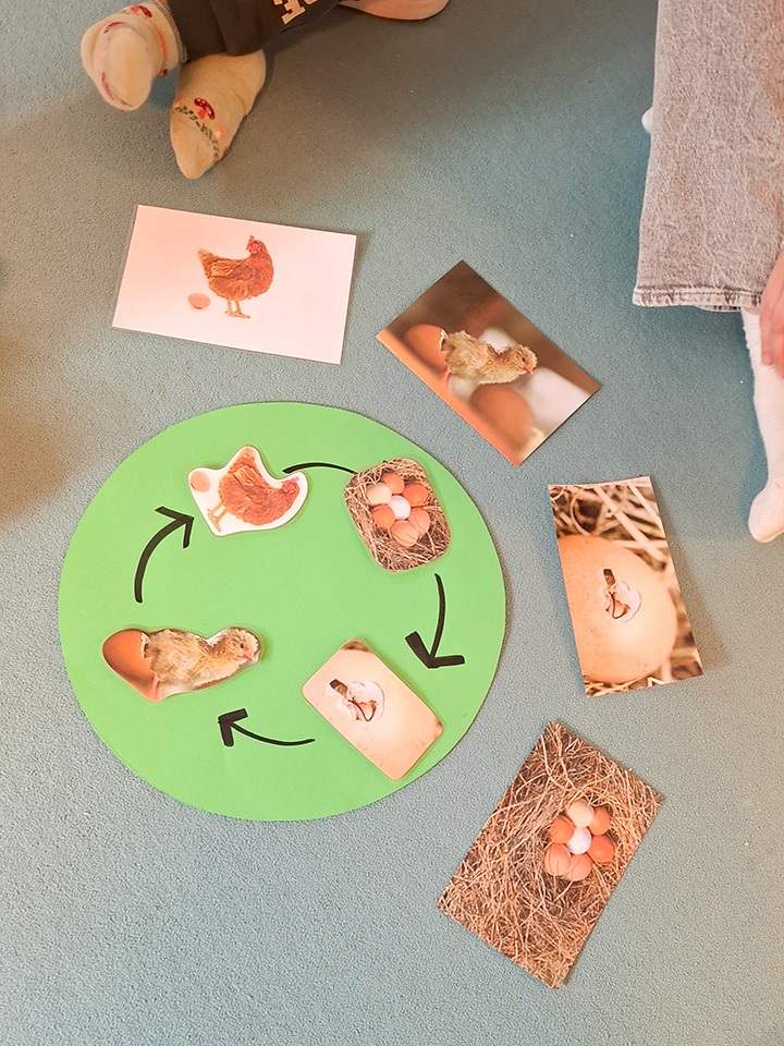 Bei unseren vielen Spaziergängen begegnen wir immer wieder verschiedenen Tieren wie Pferden, Schafen und Hühnern. Diese Erlebnisse haben die Kinder sehr begeistert – und genau daraus ist unser aktuelles Thema „Bauernhof“ entstanden.