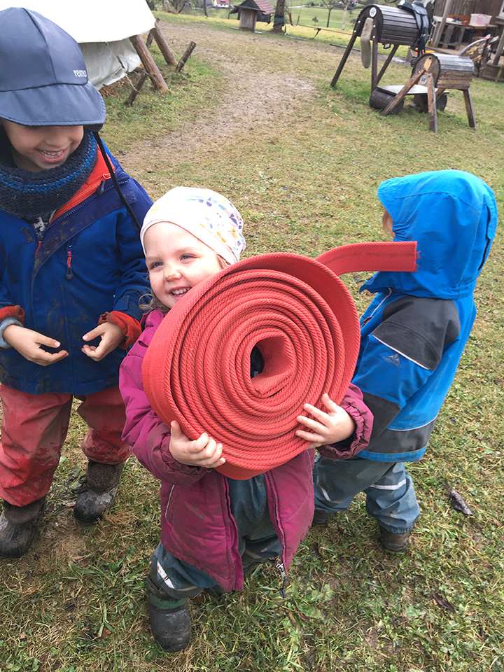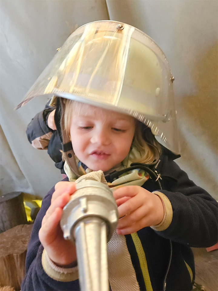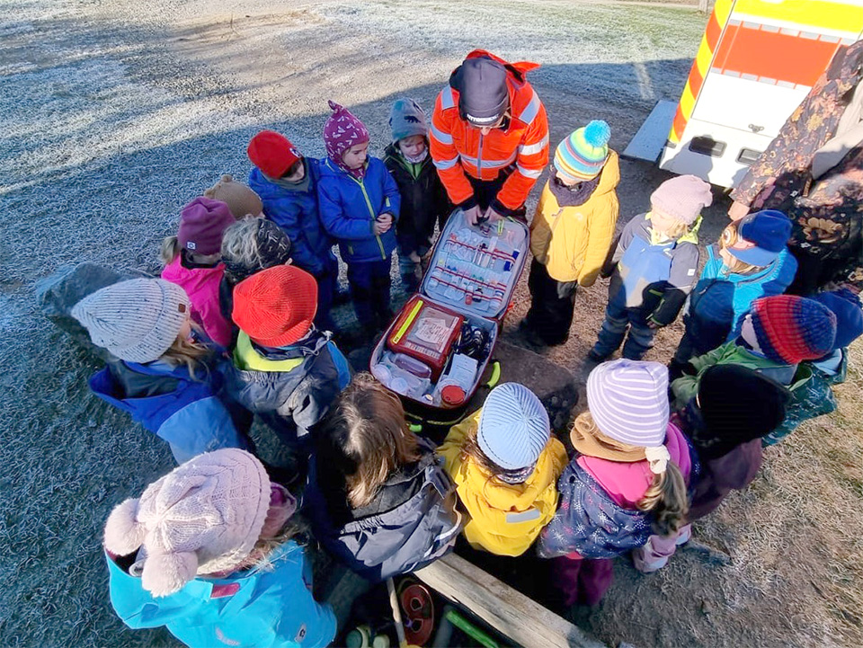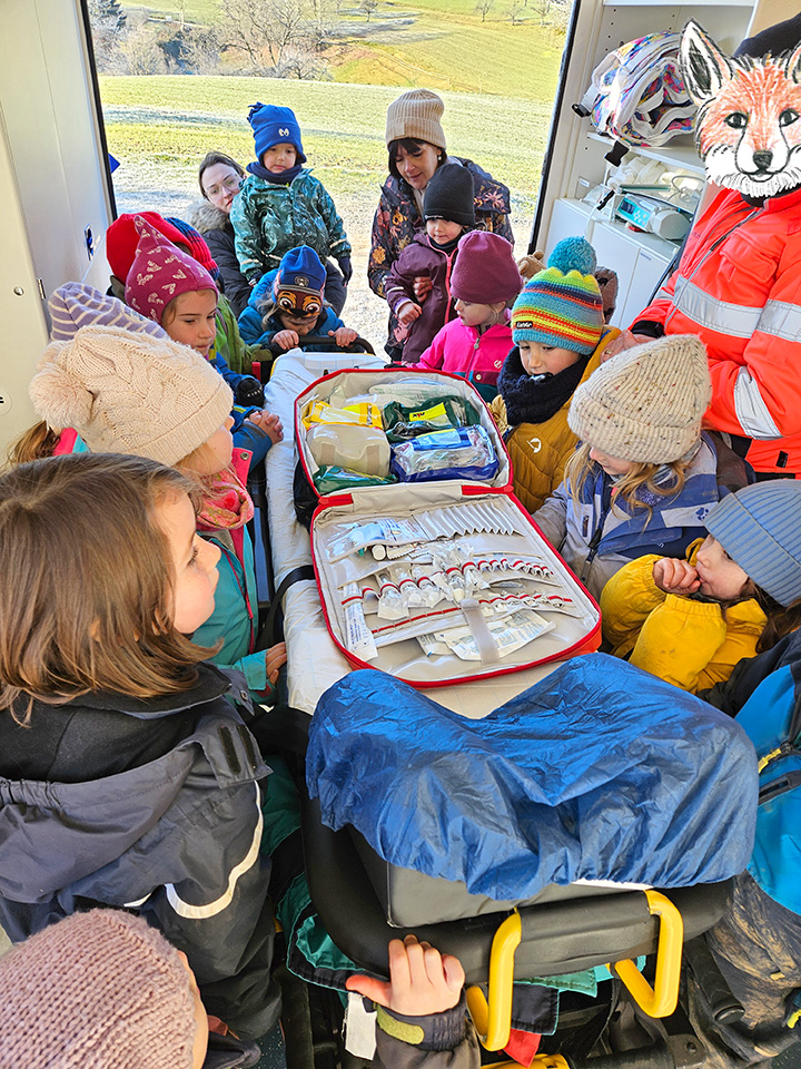Spannende Wochen erlebten die Waldkinder im Februar. Sie erfuhren, was die Feuerleute den ganzen Tag so machen und wer sonst noch zur Blaulichtfamilie gehört. Auf die Frage, wer denn oft ebenfalls kommt, wenn es irgendwo brennt, wussten die Kinder sofort Bescheid und riefen voller Begeisterung; Der Krankenwagen! Die Polizei!