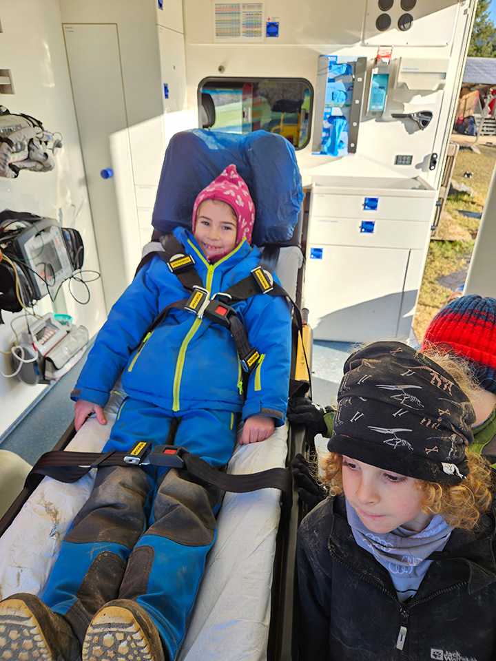 Somit war der Besuch des Rettungswagens ein besonderer Höhepunkt unseres Themas. Petra vom DRK Hausach vermittelte den Waldkindern sehr anschaulich und einfühlsam, was die Rettungssanitäter machen und wie sie uns helfen. Die Kinder waren voller Interesse mit dabei, und die mutigsten trauten sich sogar, sich auf die Liege im Rettungswagen zu legen :-)