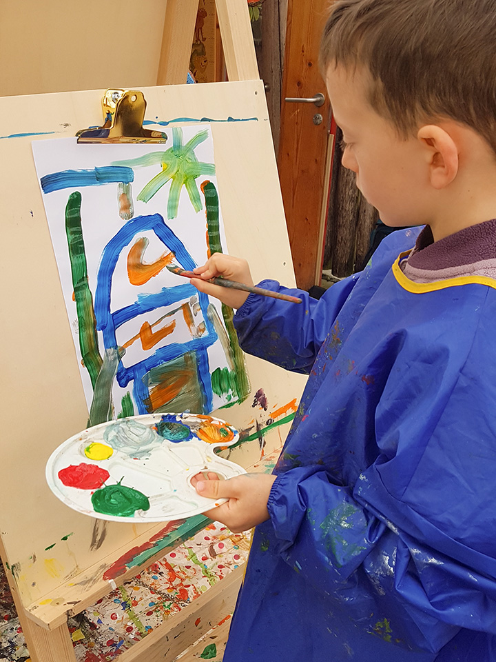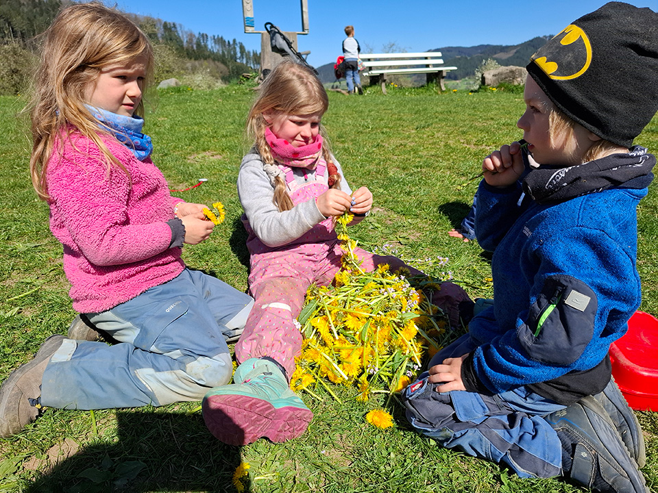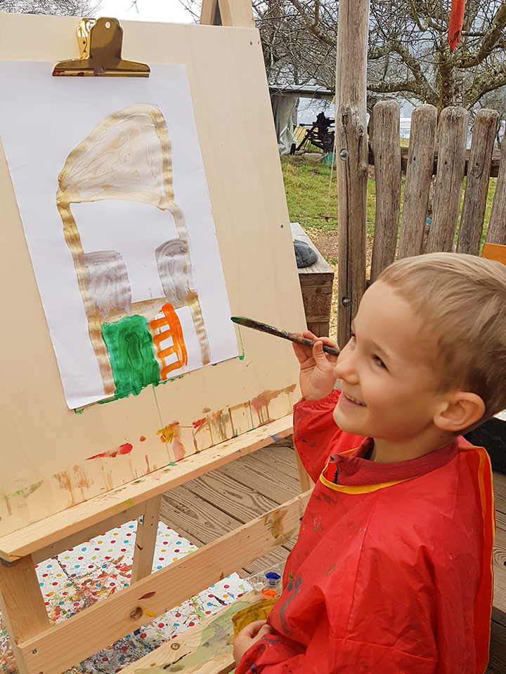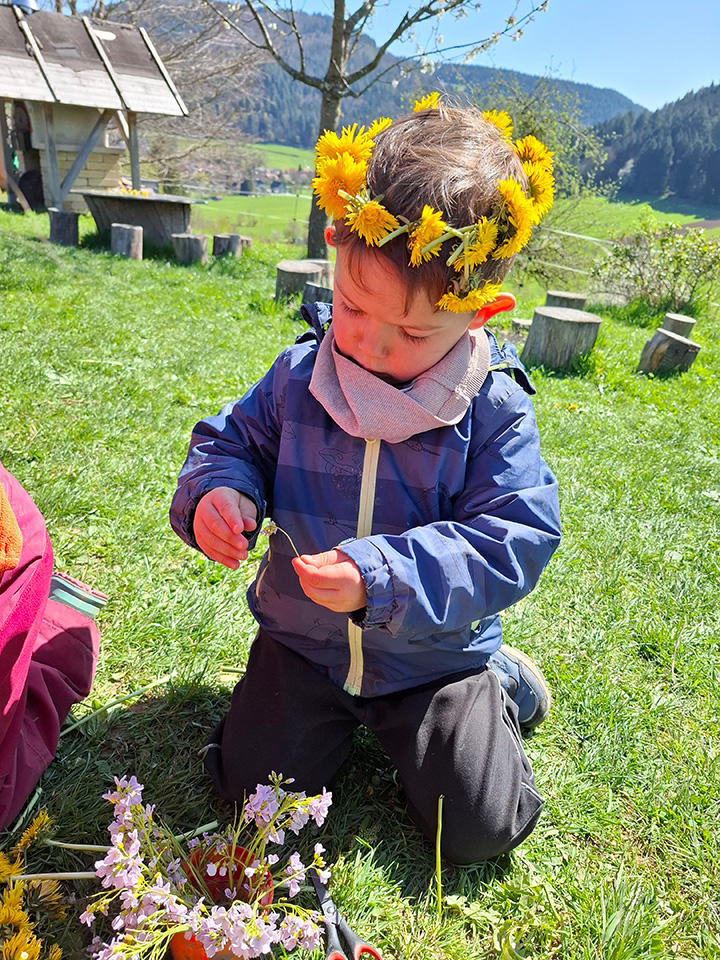 Der Frühling hat Einzug gehalten, und wir genießen die wärmenden Sonnenstrahlen beim Klettern, Spielen und Blumenpflücken. Nicht nur in die Natur kehren die Farben zurück, auch auf unserer Staffelei entstehen farbenfrohe Kunstwerke. Zu Ostern freuen sich die Kinder über eine Theatervorstellung im Freien, und zum Muttertag verschenken die Waldkinder kunterbunte Herzen an ihre Mamas und Papas.