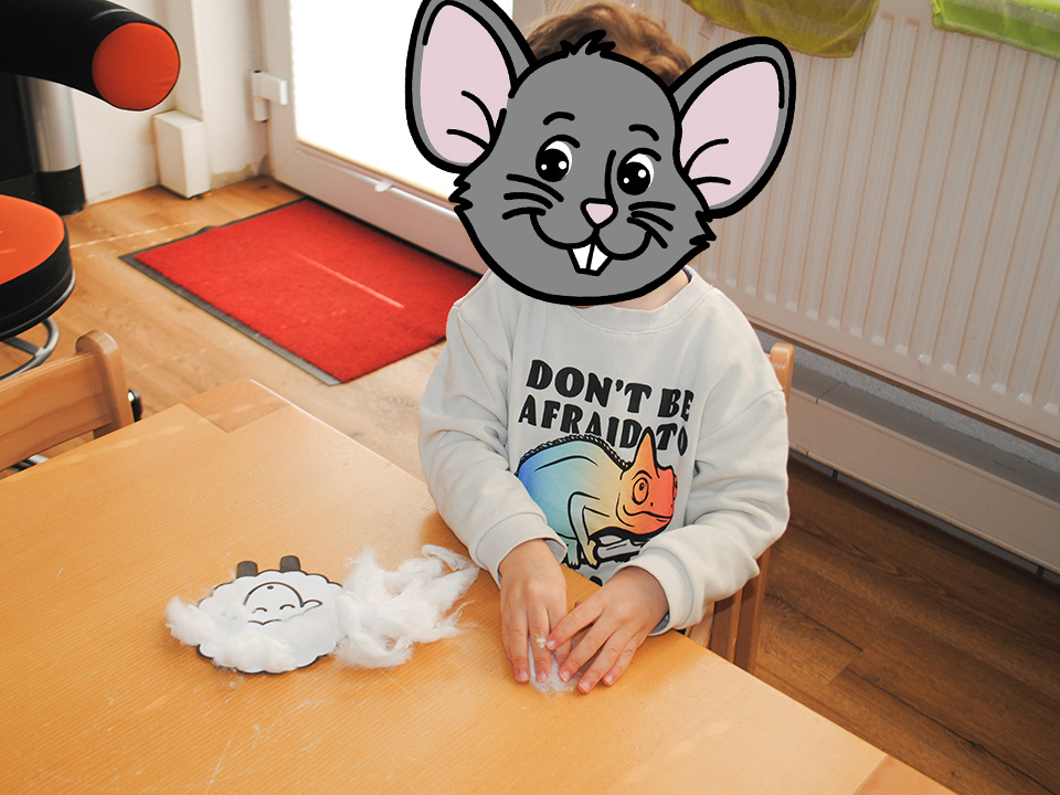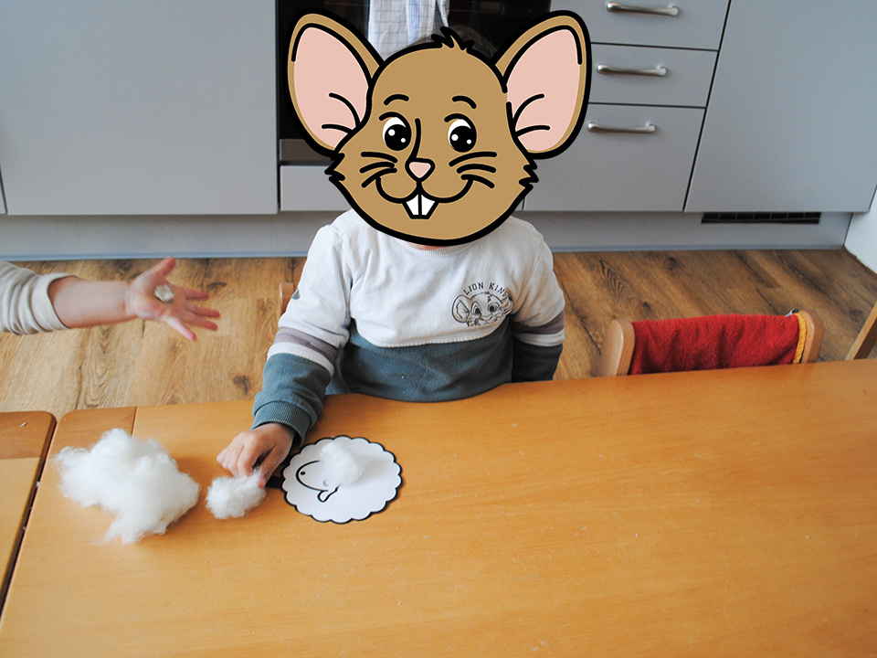 Gemeinsam haben wir besprochen, was für Tiere auf dem Bauernhof leben, wie sie unterschiedlich aussehen und klingen, was sie gerne essen und wo sie schlafen, bzw. den Tag verbringen. Außerdem haben wir tolle kleine Schäfchen gebastelt.