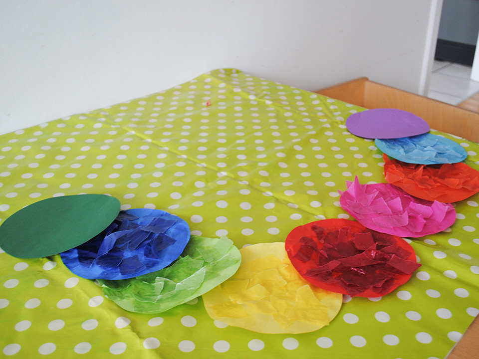 Im Juni stand bei uns alles im Zeichen der Farben. Die Kinder lernten die Grundfarben Rot, Blau, Grün und Gelb kennen und entdeckten, welche alltäglichen Dinge welche Farbe haben.