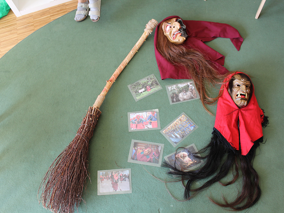 Im Februar wurde es bei uns richtig närrisch! Ein paar echte Narren statteten dem Kinderhaus Mauermatten einen Besuch ab und zogen mit ihren bunten Häs alle Blicke auf sich – die Kinder staunten mit großen Augen.