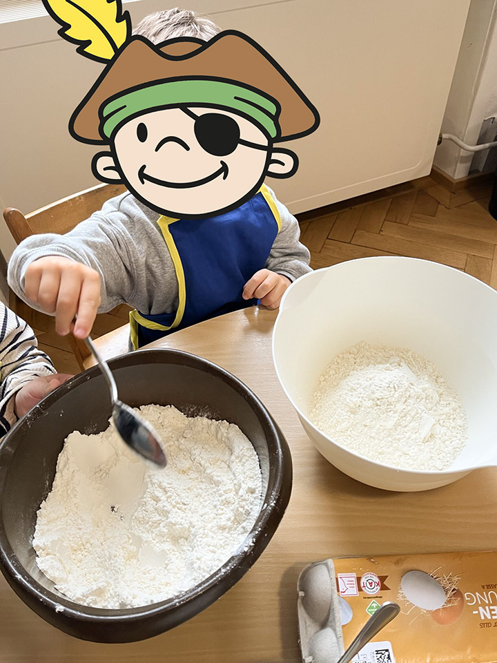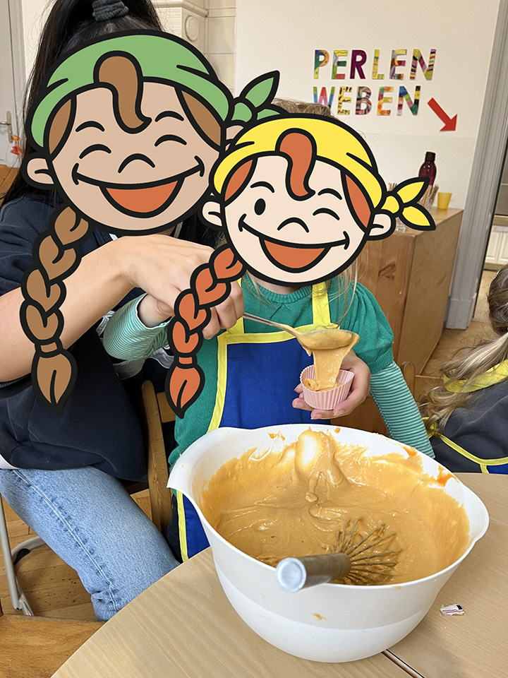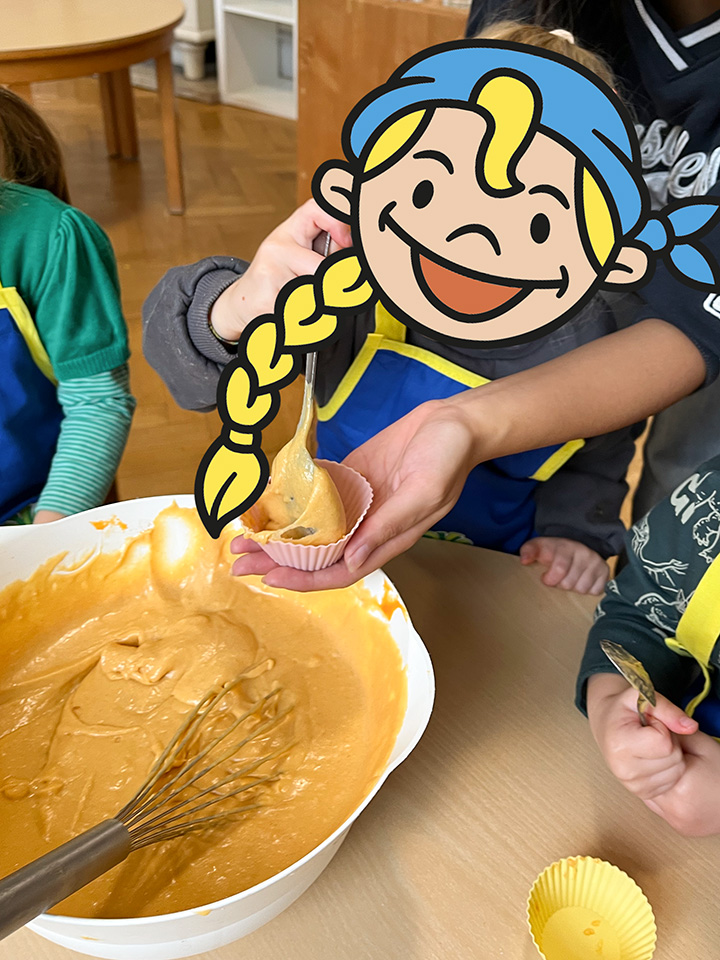 In unserem Backangebot erleben die Kinder den achtsamen und kreativen Umgang mit Lebensmitteln und Küchenutensilien. Gemeinsam bereiten wir einfache Rezepte zu – vom Teig anrühren über Kneten bis hin zum Verzieren. Die Kinder übernehmen altersgerechte Aufgaben, probieren neue Lebensmittel aus und gestalten ihre Backwerke mit großer Begeisterung.