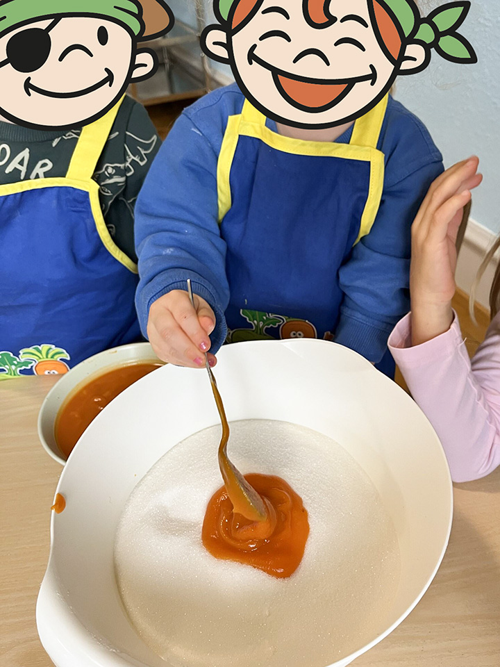 Beim gemeinsamen Arbeiten entdecken wir verschiedene Zutaten und erleben, wie aus einzelnen Rohstoffen etwas Leckeres entsteht. Dabei stehen Teamarbeit, die Freude am gemeinsamen Tun und das Miteinander im Mittelpunkt. Gleichzeitig werden Feinmotorik, Konzentration und Selbstvertrauen gestärkt, wenn die Kinder sehen, wie ihr eigenes Werk gelingt.