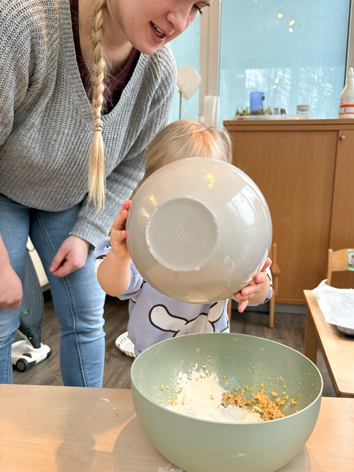 Passend zur närrischen Zeit wurde es bei uns in der Kita bunt und lecker: Gemeinsam haben wir Konfetti-Kekse gebacken. Mit viel Freude halfen die Kinder beim Rühren, Kneten und Rollen des Teigs. Das bunte Streusel-„Konfetti“ durfte natürlich nicht fehlen und wurde mit großer Begeisterung auf dem Teig verteilt. Schon während des Backens zog ein herrlicher Duft durch die Räume.