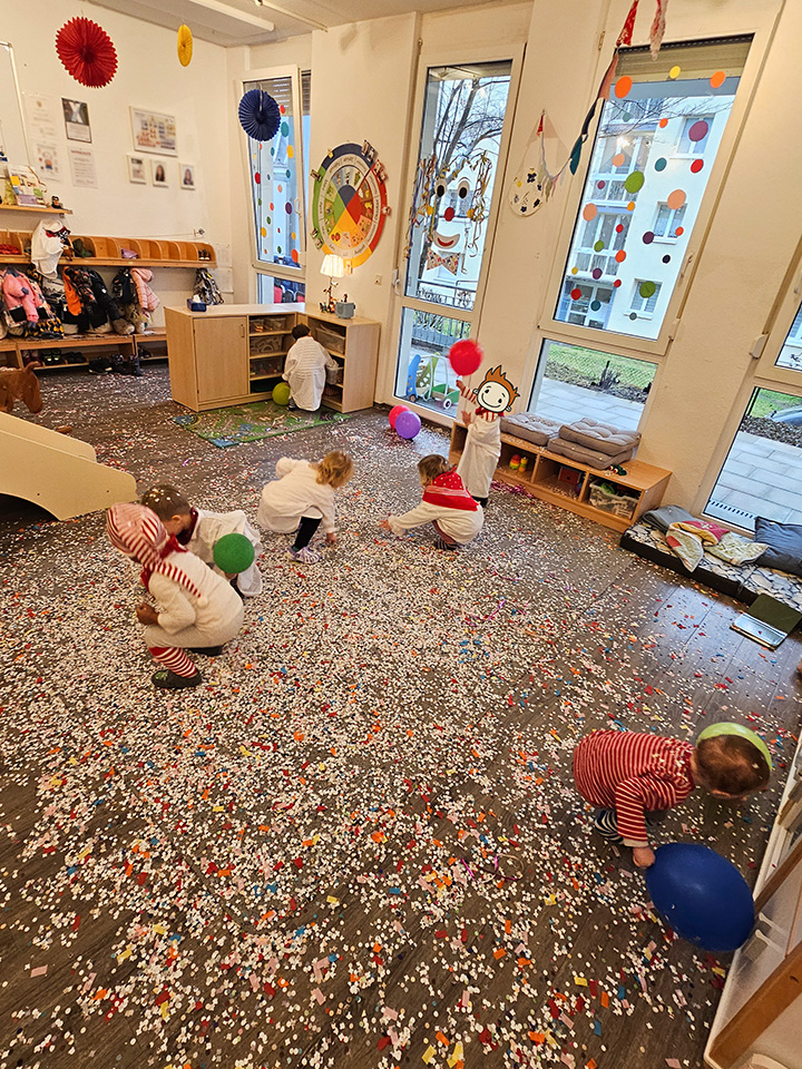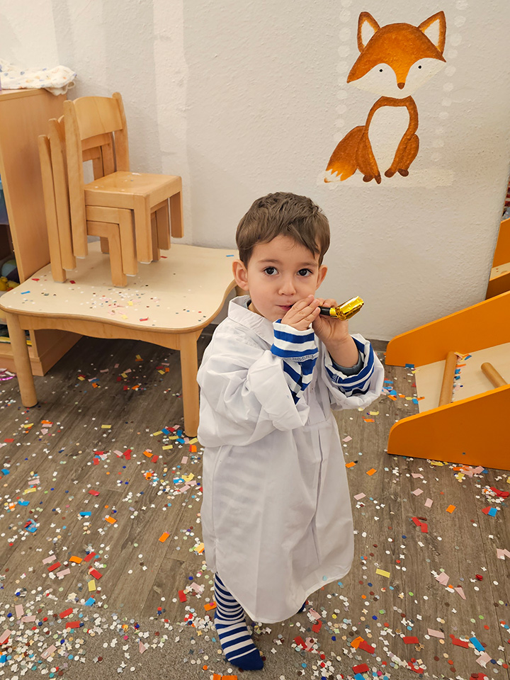 Am Fasnet-Freitag wurde es bei uns richtig bunt und fantasievoll! Die Kinder kamen in tollen Verkleidungen – als Feuerwehrmann, Polizist, Eule, Fee oder Astronaut. Schon beim Ankommen staunten wir über die vielen kreativen Kostüme und die strahlenden Kinderaugen.
