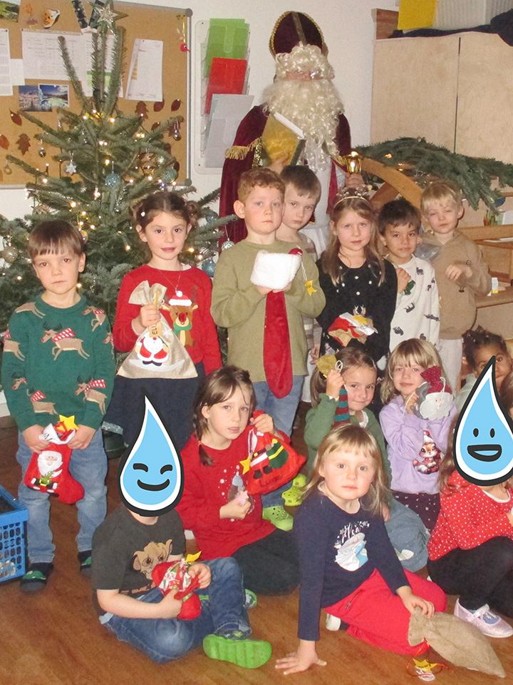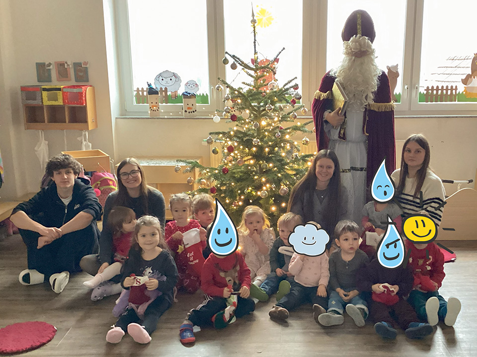 Auch im Kinderhaus Sonnenschein machte sich der Nikolaus auf den Weg, um den Kindern ihre Nikolausstrümpfe zu bringen. Die Kinder freuten sich sehr über den Besuch und die kleinen Geschenke. Gemeinsam sangen sie für den Nikolaus und verabschiedeten ihn anschließend, als er weiterziehen musste. Es war ein wunderschöner Tag, der den Kindern viel Freude bereitet hat.