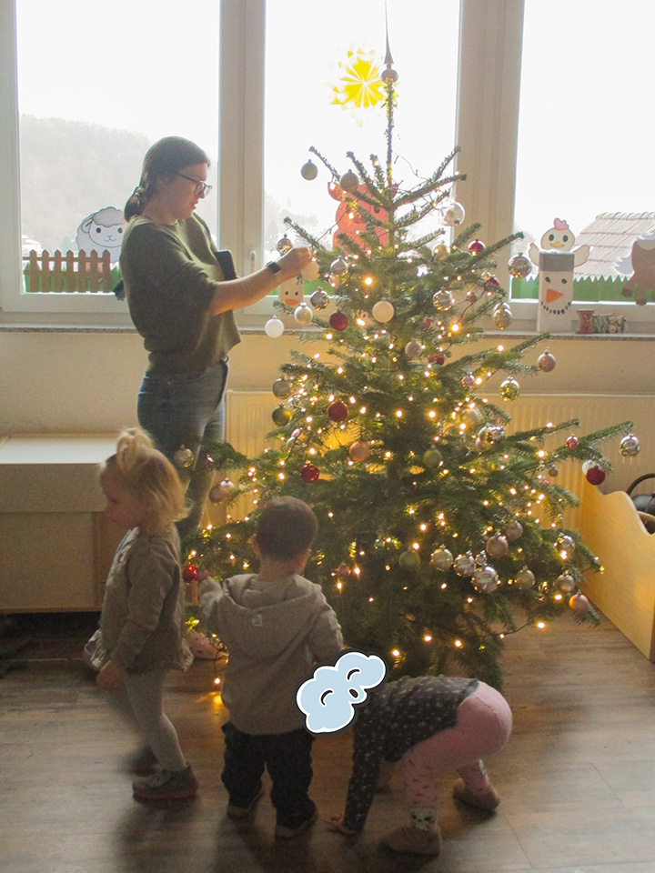Auch im Kinderhaus Sonnenschein wurde es weihnachtlich. Die Kinder schmückten mit viel Freude den Weihnachtsbaum. Alle Gruppen waren fleißig: Sie bastelten, backten und malten passend zur Adventszeit. So hatten die Kinder eine wundervolle Vorweihnachtszeit voller Kreativität und Freude.