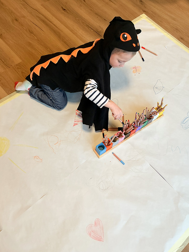 Die Kinder durften außerdem auf dem Boden ein großes Plakat gestalten, das anschließend im Flur aufgehängt wurde. Auch beim Mittagessen ging es verrückt zu: Zuerst gab es das Dessert, dann den Hauptgang und zum Schluss einen Salat.