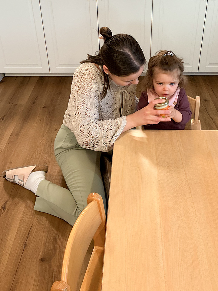 Passend zu unserem aktuellen Thema Bauernhof haben die Glühwürmchen selbst Butter hergestellt. Dafür wurde Sahne in ein Schraubglas gefüllt und so lange kräftig geschüttelt, bis daraus Butter entstand. Anschließend wurde die Masse in ein Sieb gegeben, sodass die Buttermilch von der Butter getrennt werden konnte.